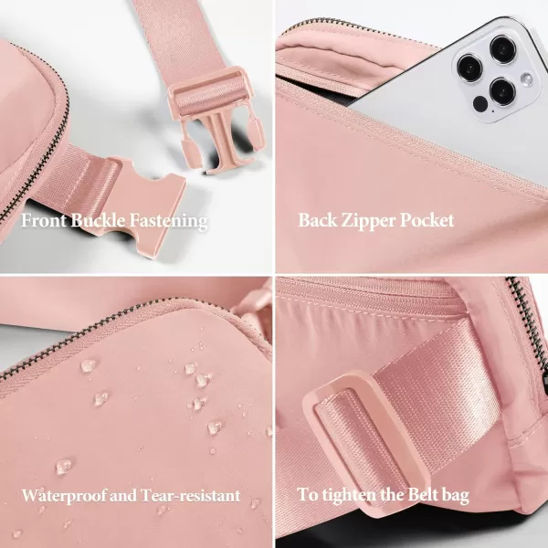 imageODODOS Unisex Mini Belt Bag with Adjustable Strap Small Fanny Pack for Workout Running Traveling Hiking IvoryLight Pink