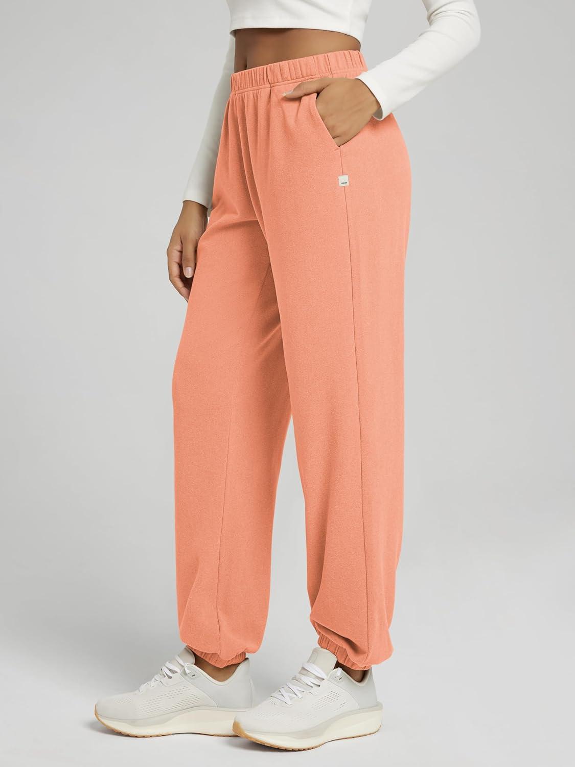 ODODOS Women's Brushed Fleece Jogger Sweatpants – Cozy Warm Adjustable High-Rise Relaxed Lounge Pants with Pockets(Coral Heather)