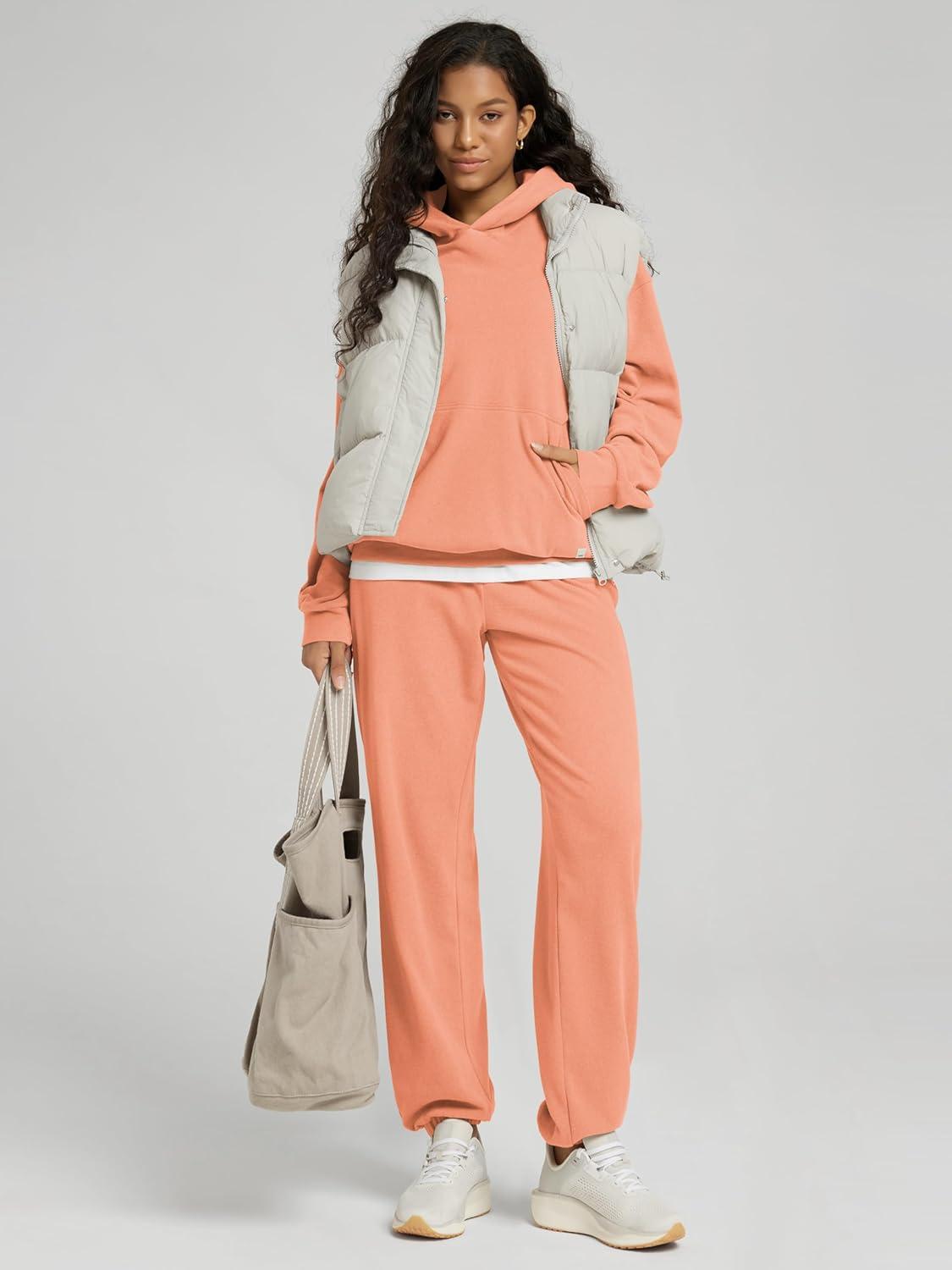 ODODOS Women’s Brushed Fleece Jogger Sweatpants – Cozy Warm Adjustable High-Rise Relaxed Lounge Pants with Pockets(Coral Heather)