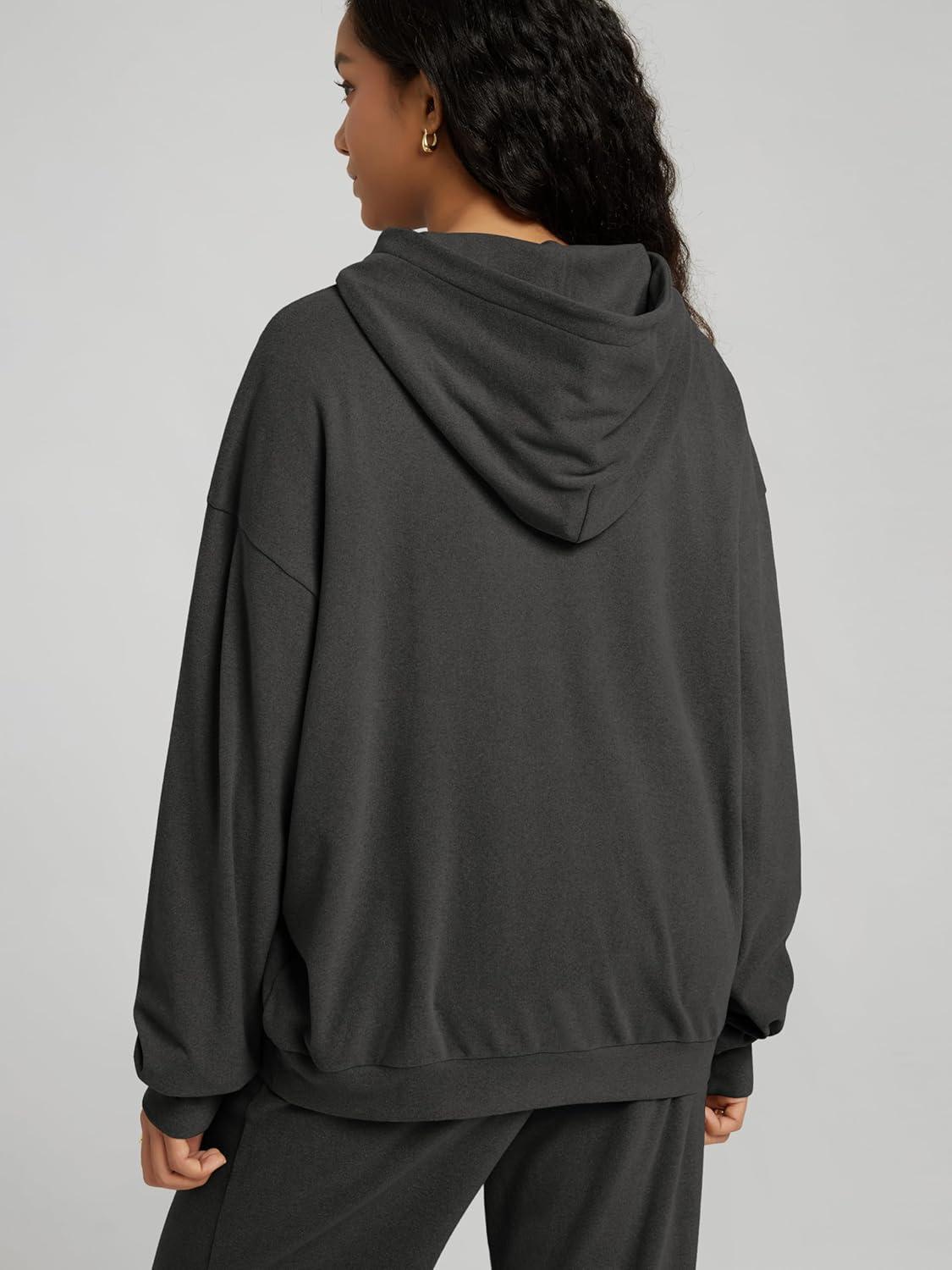 ODODOS Women's Brushed Fleece Oversized Hoodie – Cozy Warm Long Sleeve Pullover Sweatshirt with Kangaroo Pocket(Charcoal Heather)