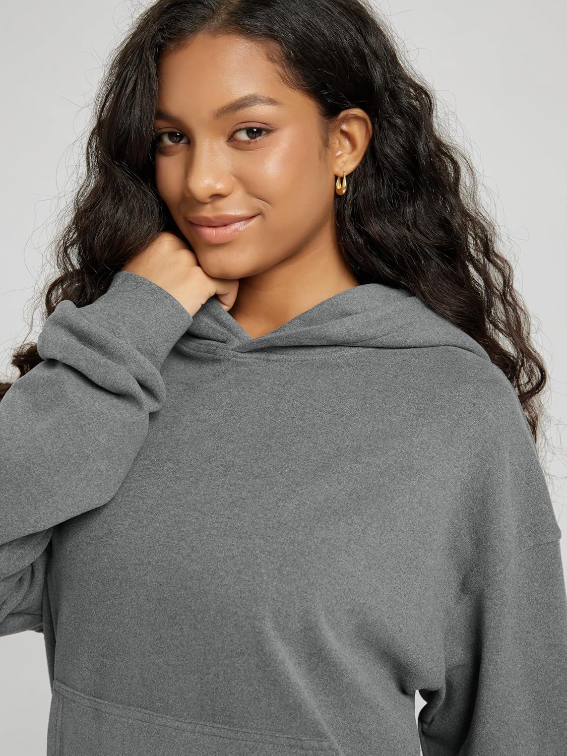 ODODOS Women's Brushed Fleece Oversized Hoodie – Cozy Warm Long Sleeve Pullover Sweatshirt with Kangaroo Pocket(Gray Heather)