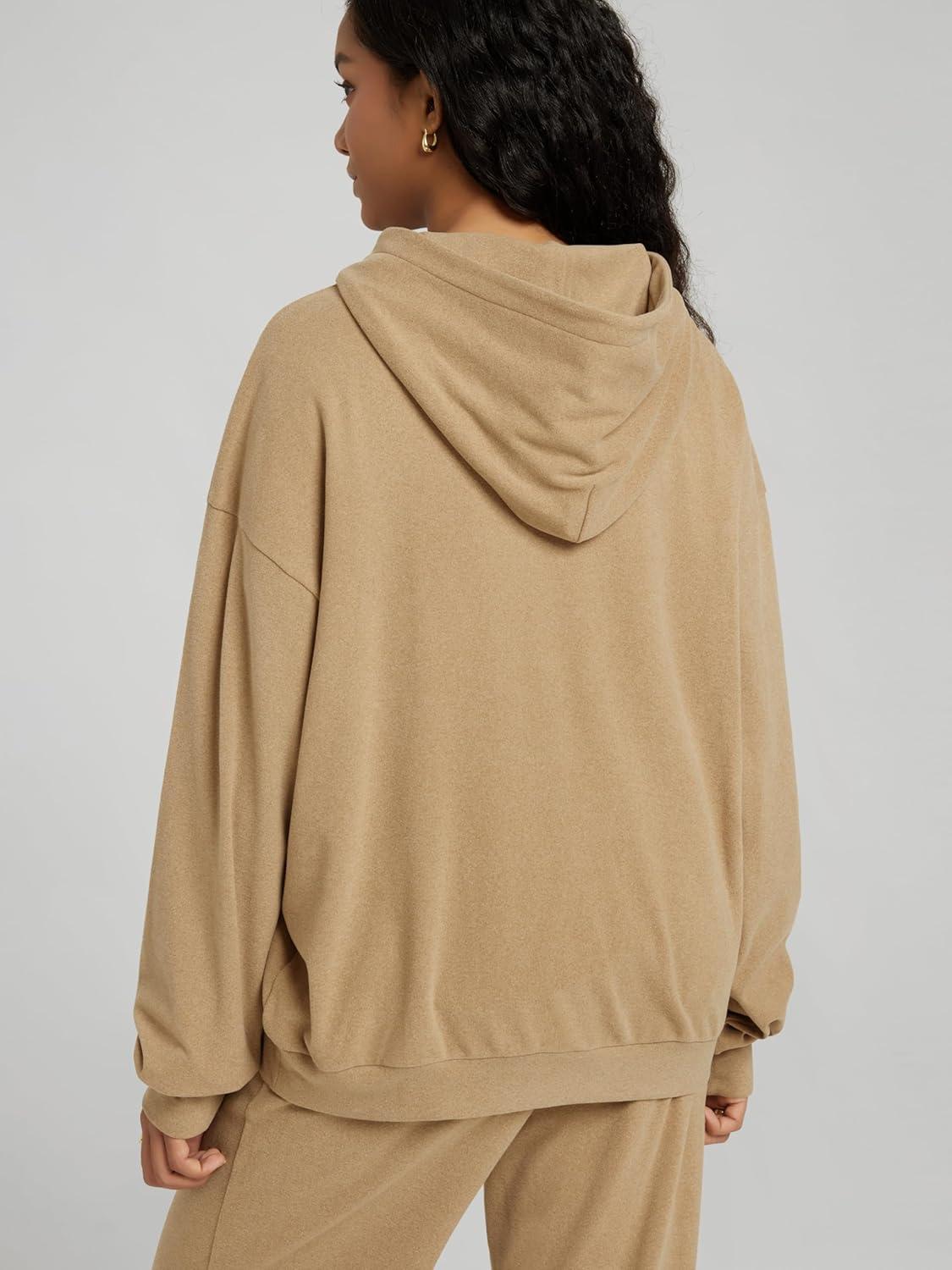 imageODODOS Womens Brushed Fleece Oversized Hoodie  Cozy Warm Long Sleeve Pullover Sweatshirt with Kangaroo PocketSand Heather
