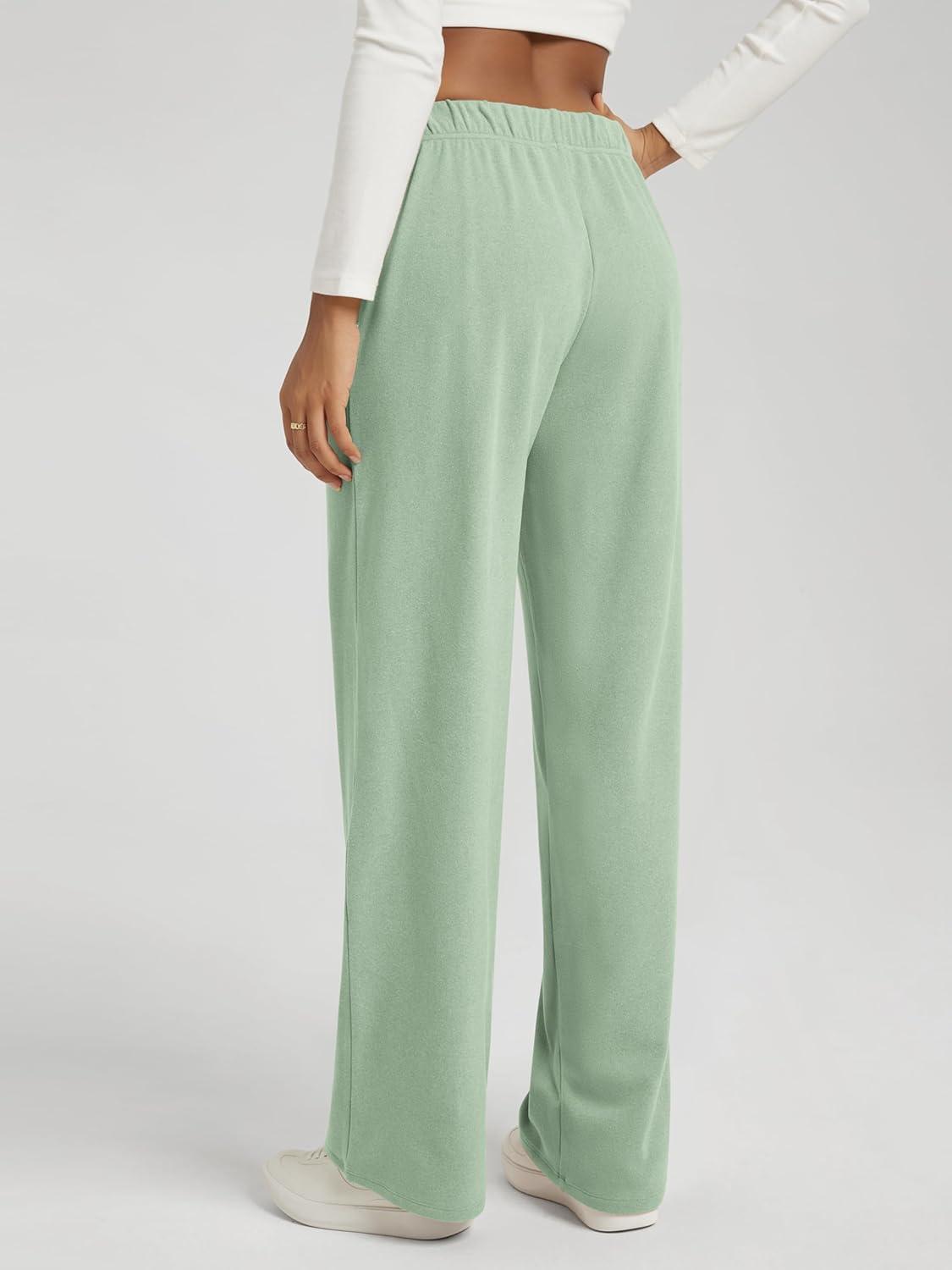 ODODOS Women’s Brushed Fleece Straight Leg Pants – Cozy Warm High-Rise Relaxed Lounge Sweatpants with Pockets - 29" Inseam(Mint Green Heather)