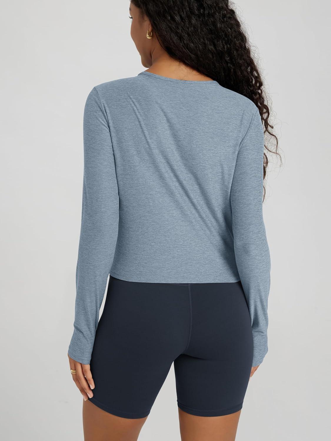 ODODOS Women's Cardigan - Ultra Soft Stratum Tech Performance Long Sleeve Crop UPF 50+ Button Down Crewneck Top(Dusty Blue Heather)