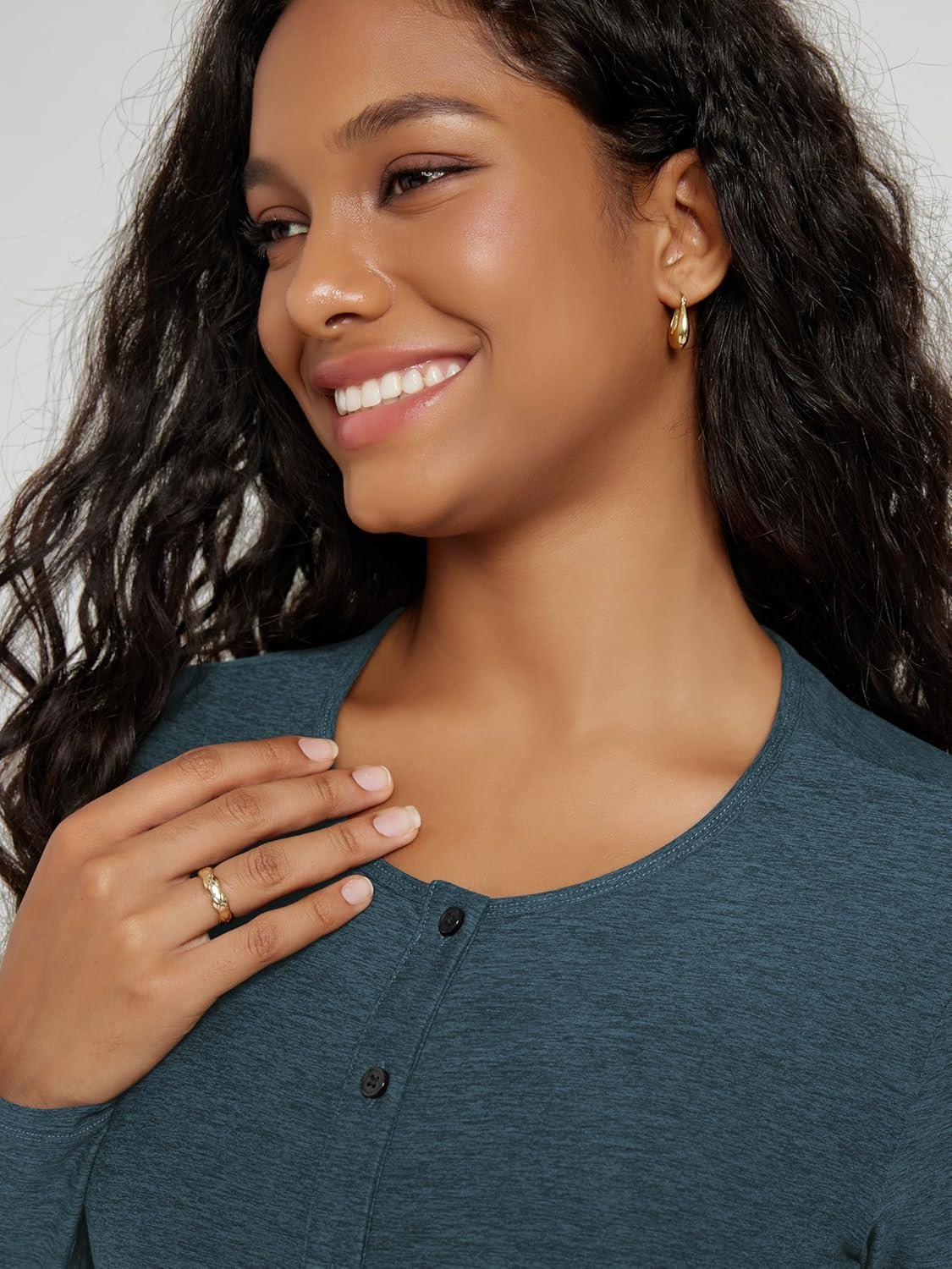 ODODOS Women’s Cardigan – Ultra Soft Stratum Tech Performance Long Sleeve Crop UPF 50+ Button Down Crewneck Top(Navy Heather)
