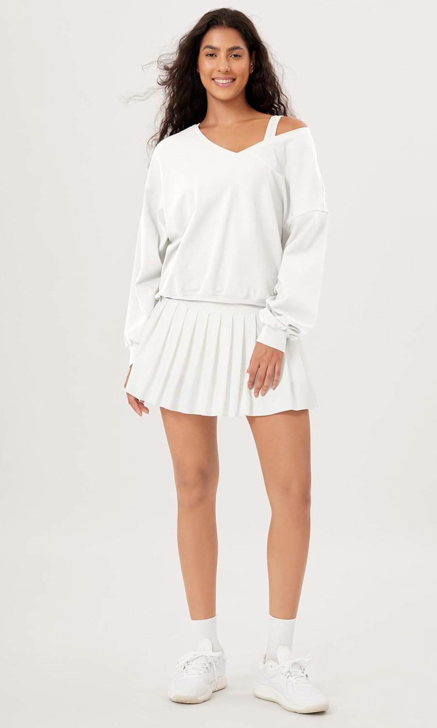 ODODOS Women's Cotton Soft Double V Sweatshirts Long Sleeve Fall Outfits Oversized Pullover Tops(White)