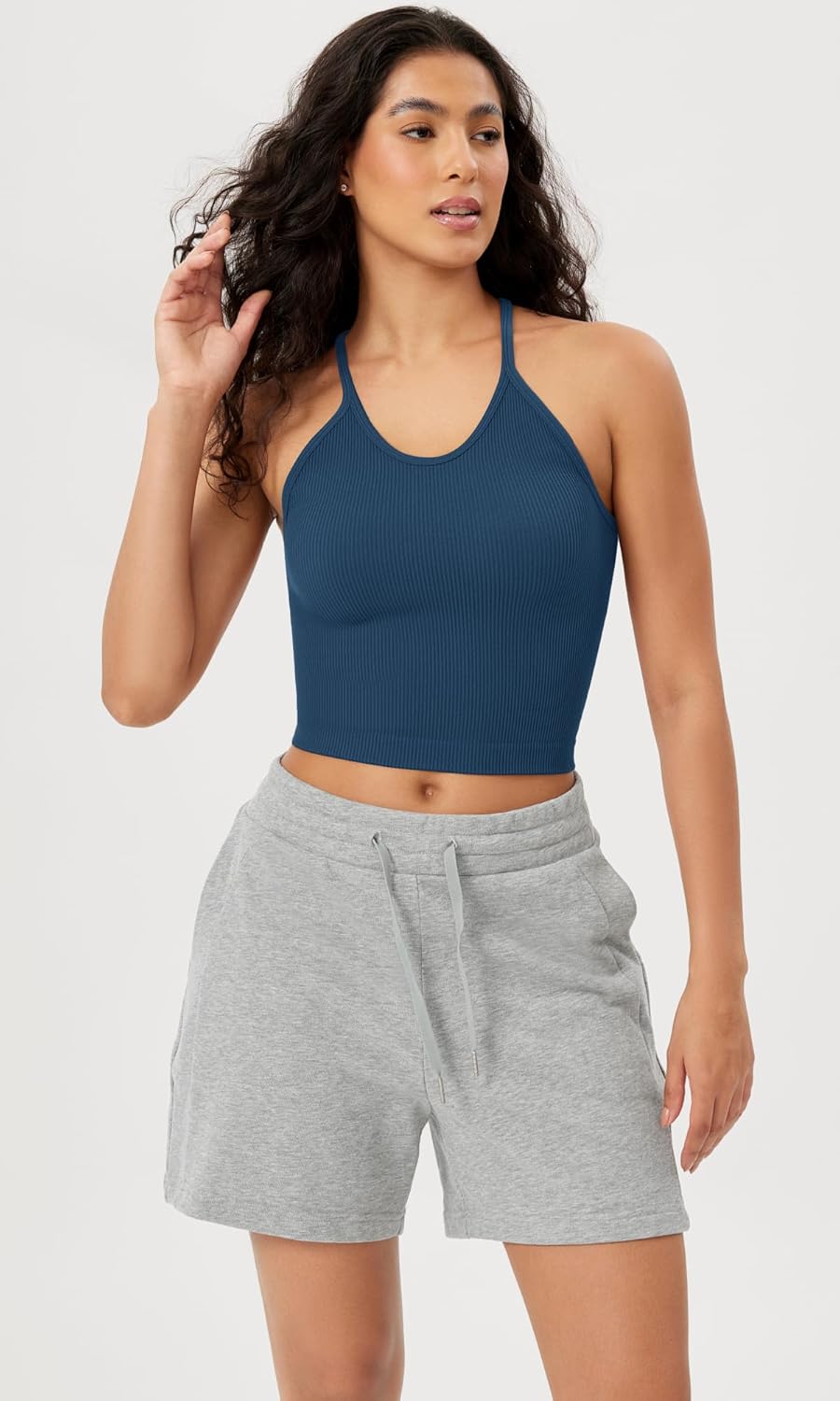 ODODOS Womens Crop 3Pack Washed Seamless RibKnit Camisole Crop Tank TopsLintnutriablue Ashes Crop