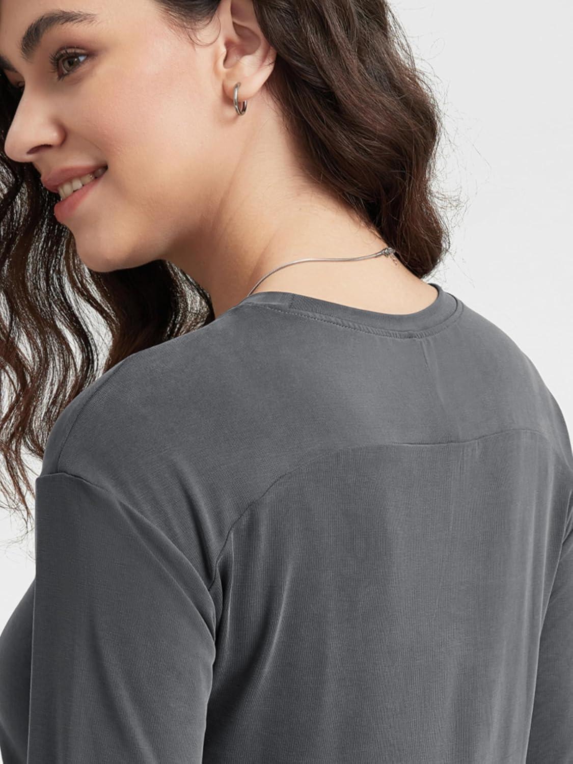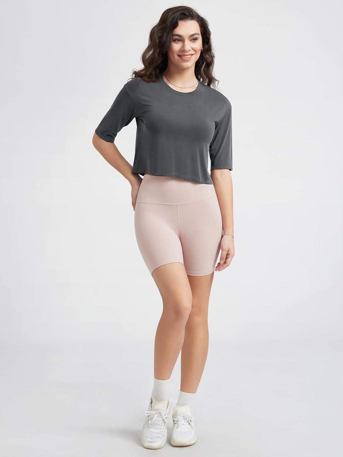 ODODOS Women’s Cropped T-Shirt – Ultra Soft Short Sleeve Top Crew Neck Relaxed Fit Casual Tee for Everyday Wear(Charcoal)