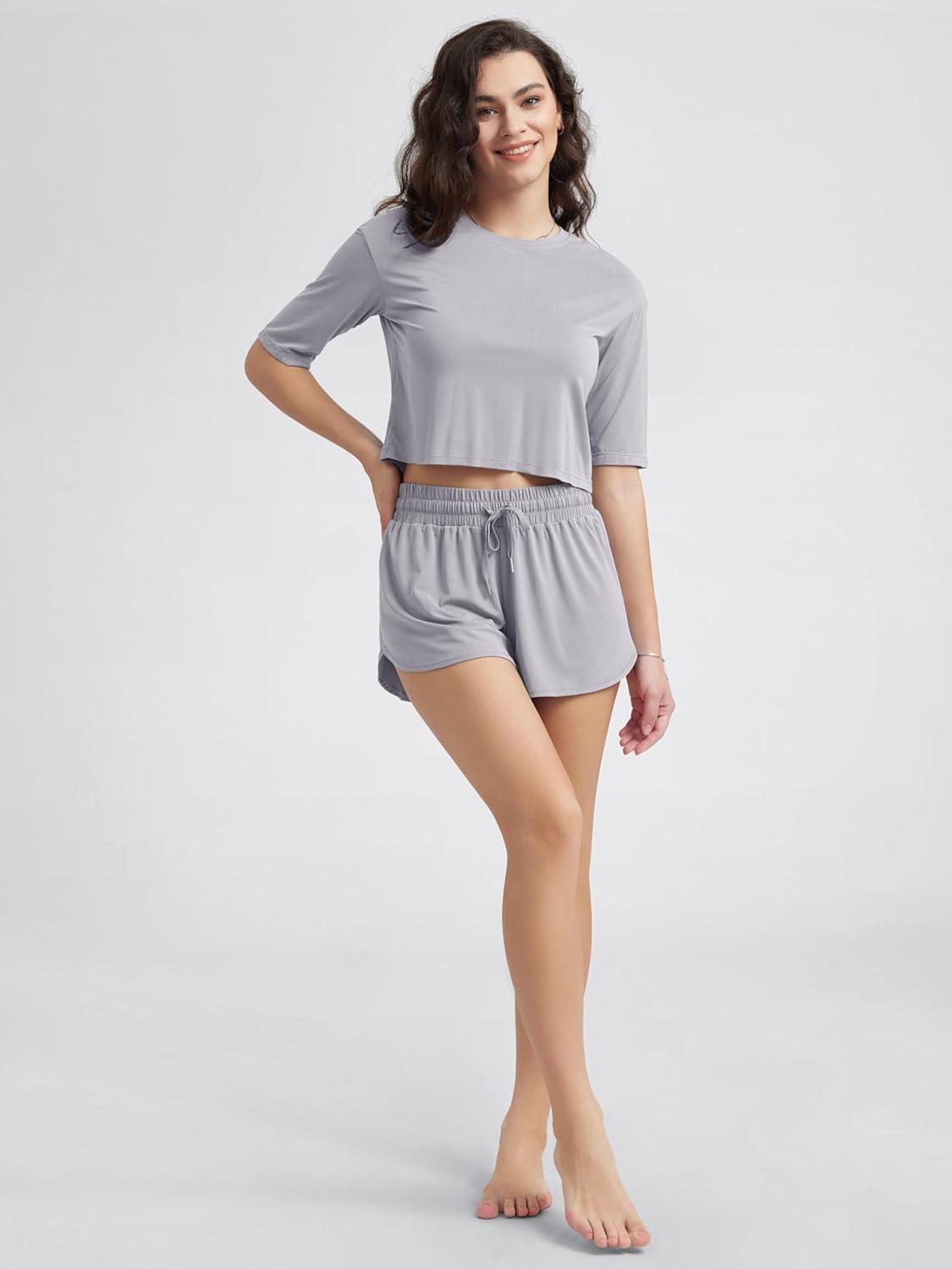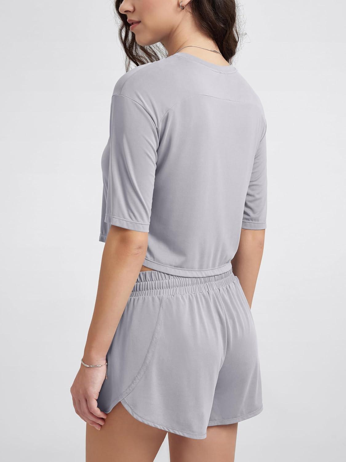 ODODOS Women's Cropped T-Shirt - Ultra Soft Short Sleeve Top Crew Neck Relaxed Fit Casual Tee for Everyday Wear(Light Gray)