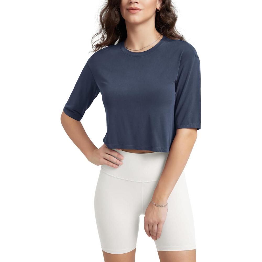 imageODODOS Womens Cropped TShirt  Ultra Soft Short Sleeve Top Crew Neck Relaxed Fit Casual Tee for Everyday WearNaval