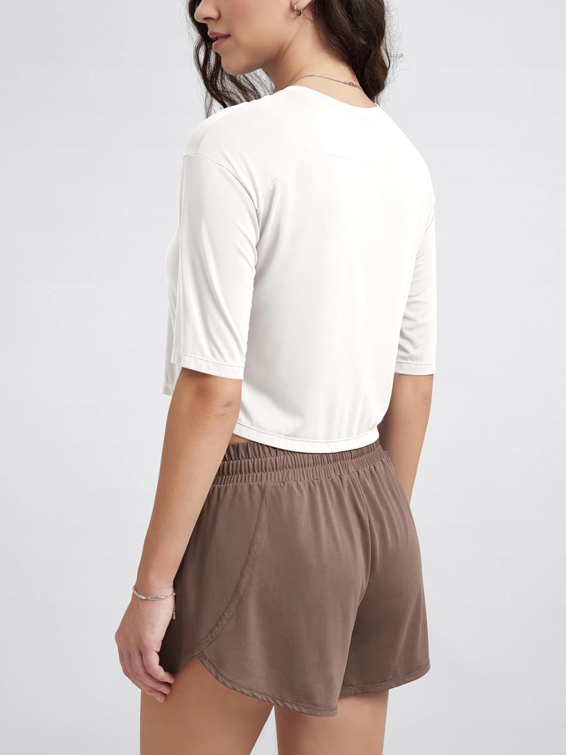 imageODODOS Womens Cropped TShirt  Ultra Soft Short Sleeve Top Crew Neck Relaxed Fit Casual Tee for Everyday WearBeige