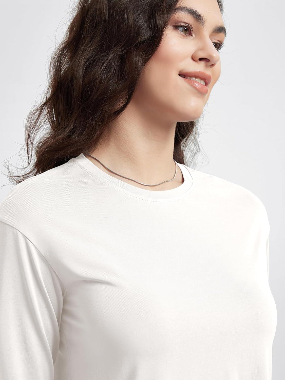 ODODOS Women’s Cropped T-Shirt – Ultra Soft Short Sleeve Top Crew Neck Relaxed Fit Casual Tee for Everyday Wear(White)