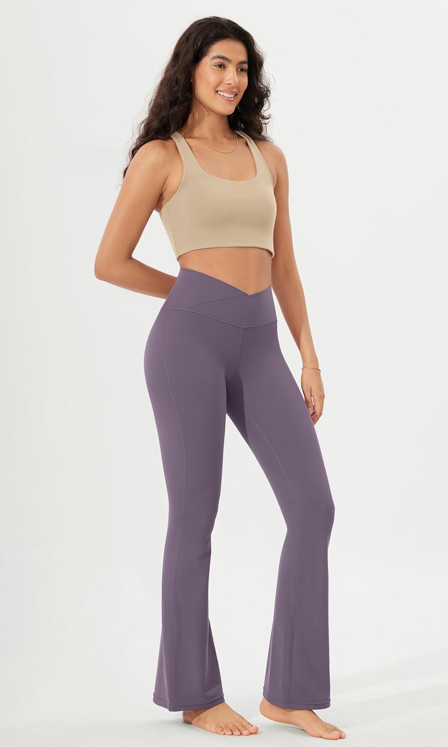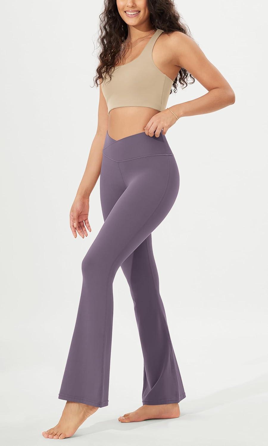 ODODOS Women’s Crossover Flared Yoga Pants Cloud Feeling Soft High Waist Bootcut Leggings with Back Pocket -30″ / 32″ Inseam(Ash Violet)