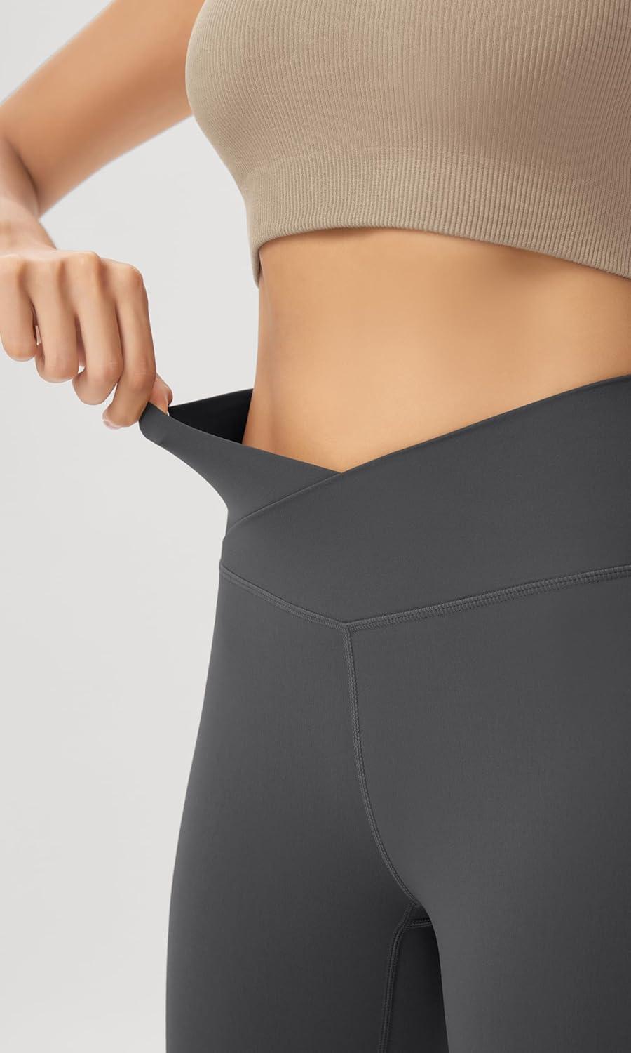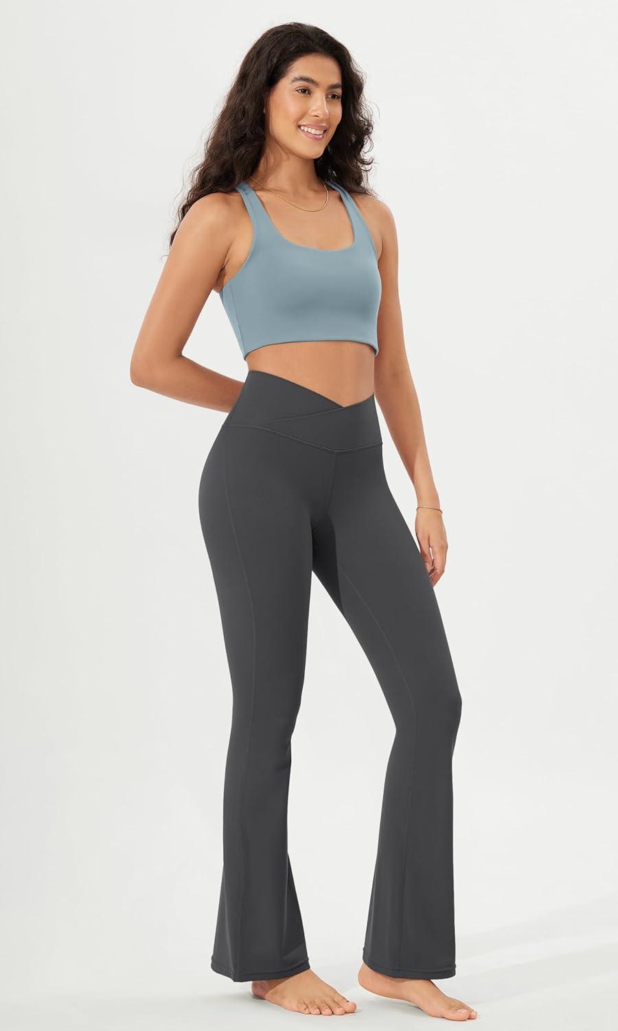 ODODOS Women’s Crossover Flared Yoga Pants Cloud Feeling Soft High Waist Bootcut Leggings with Back Pocket -30″ / 32″ Inseam(Charcoal)