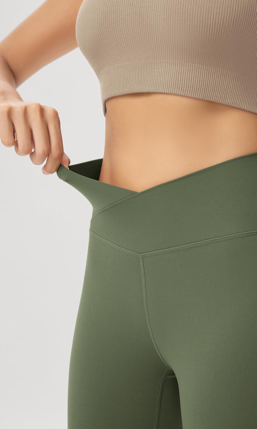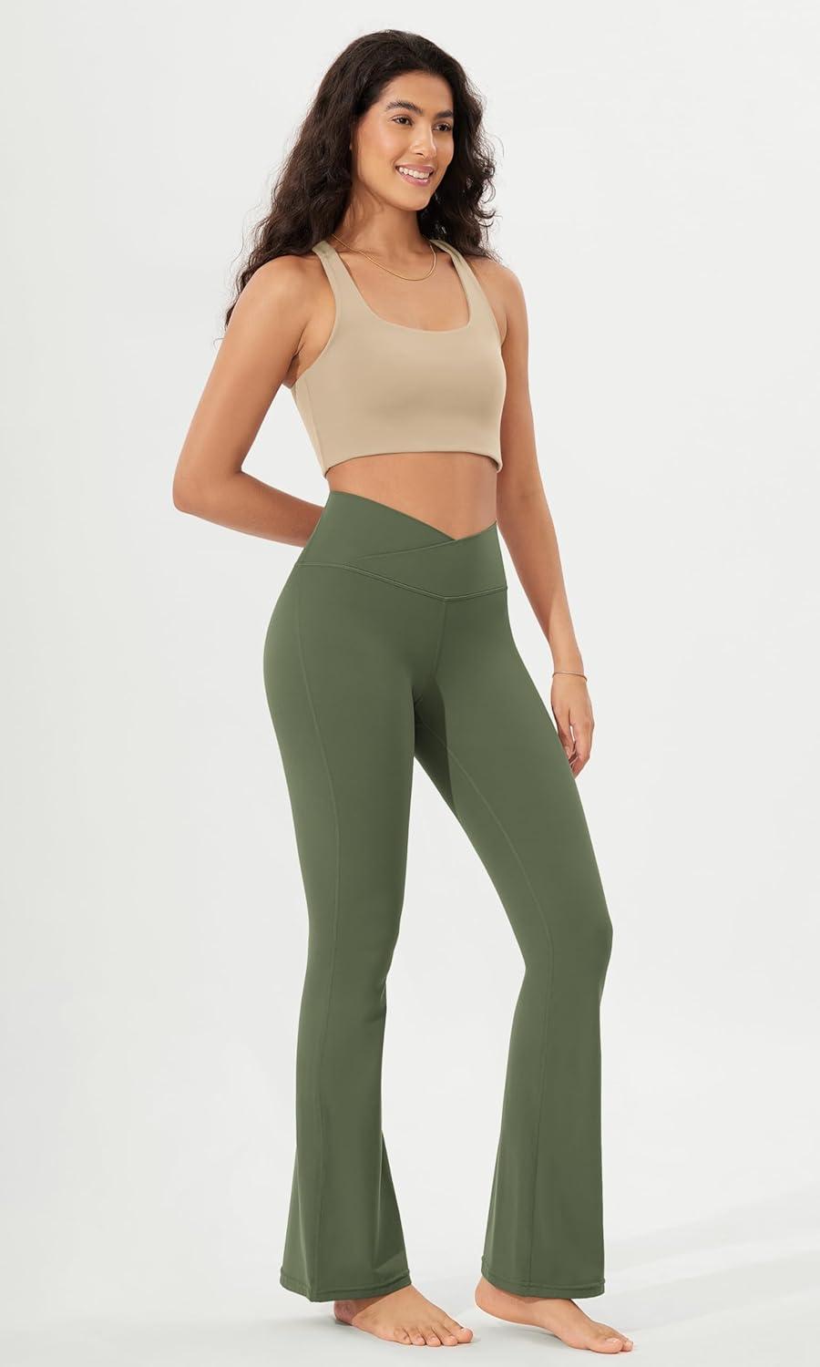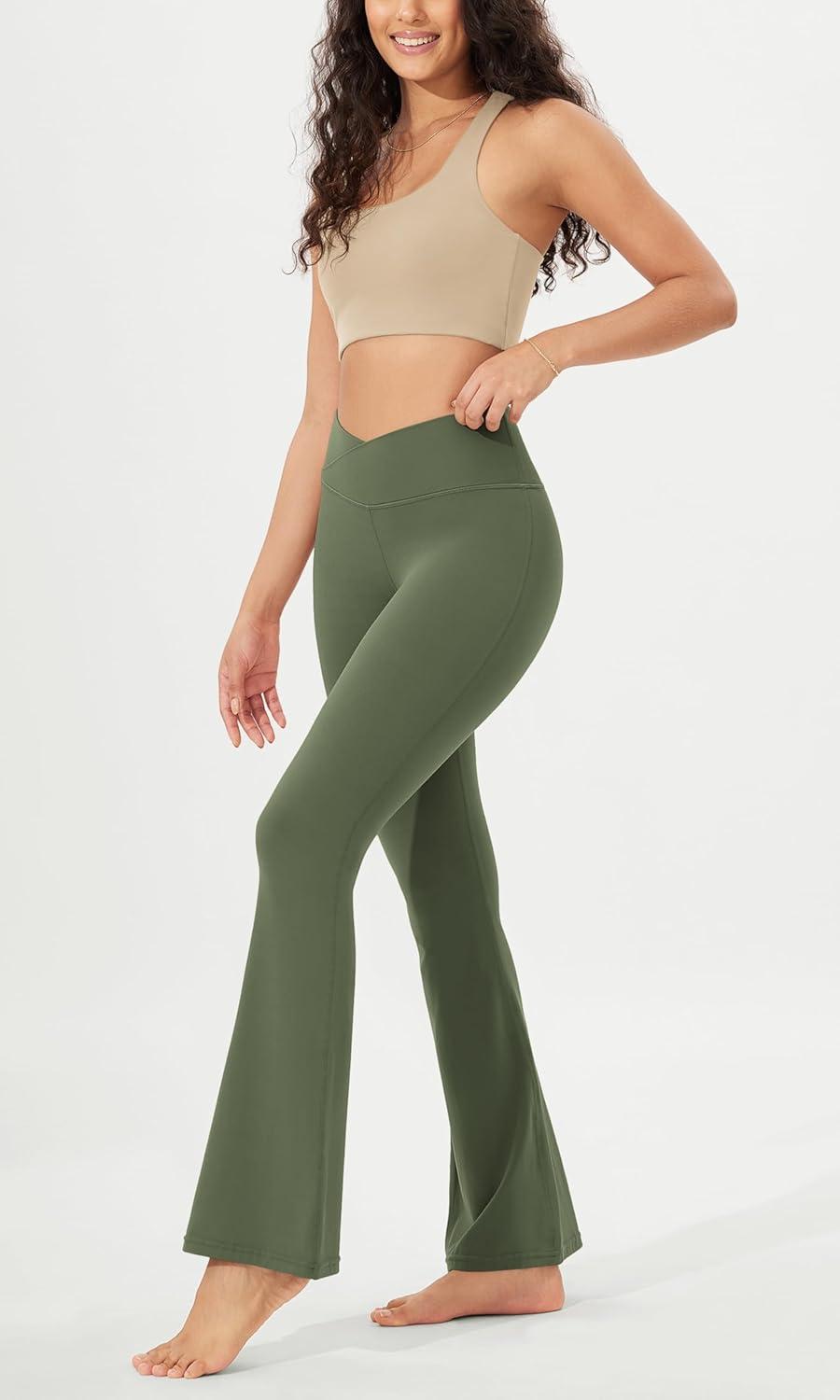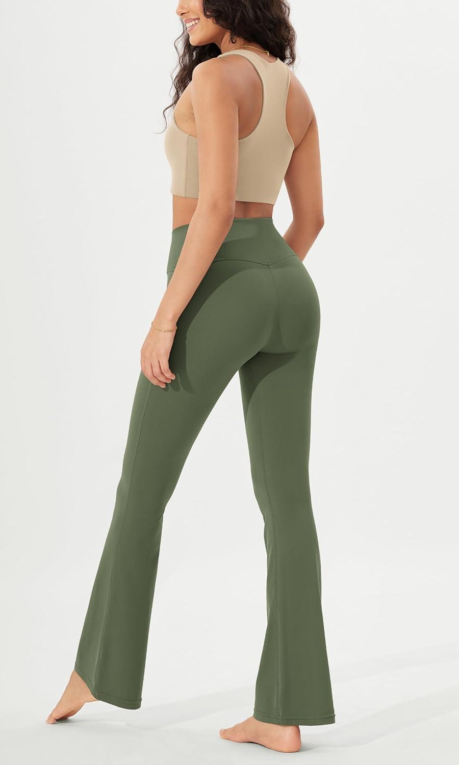 ODODOS Women’s Crossover Flared Yoga Pants Cloud Feeling Soft High Waist Bootcut Leggings with Back Pocket -30″ / 32″ Inseam(Dark Olive)