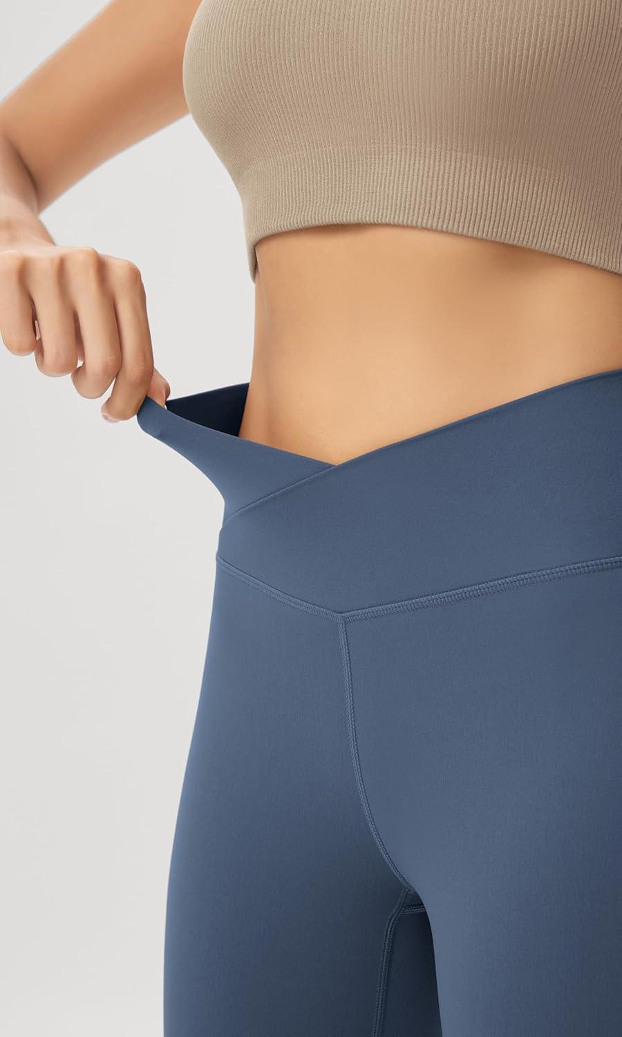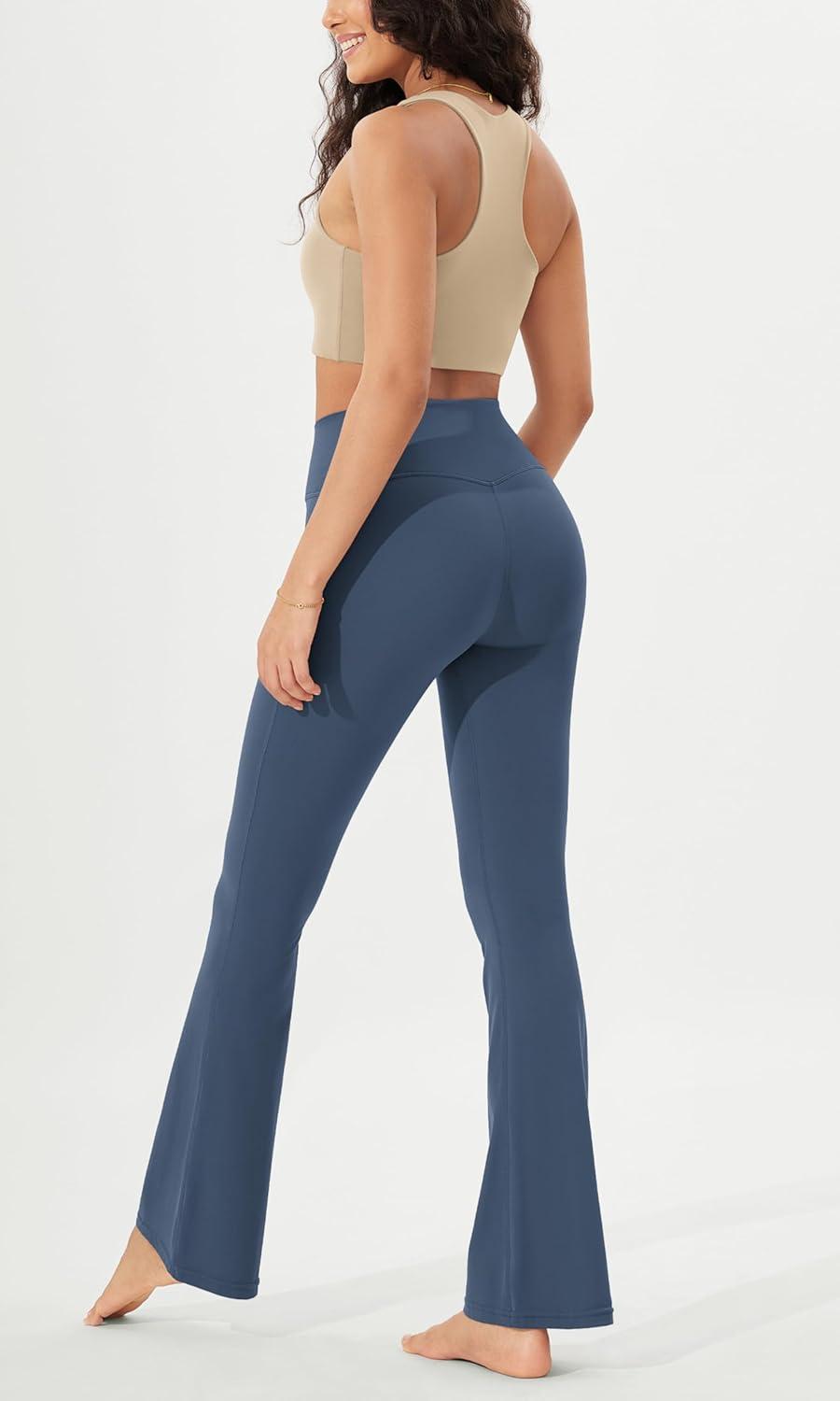 ODODOS Women’s Crossover Flared Yoga Pants Cloud Feeling Soft High Waist Bootcut Leggings with Back Pocket -30″ / 32″ Inseam(Ink Blue)