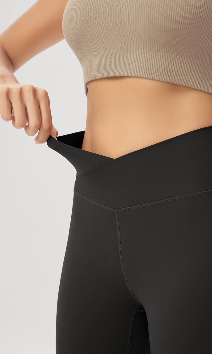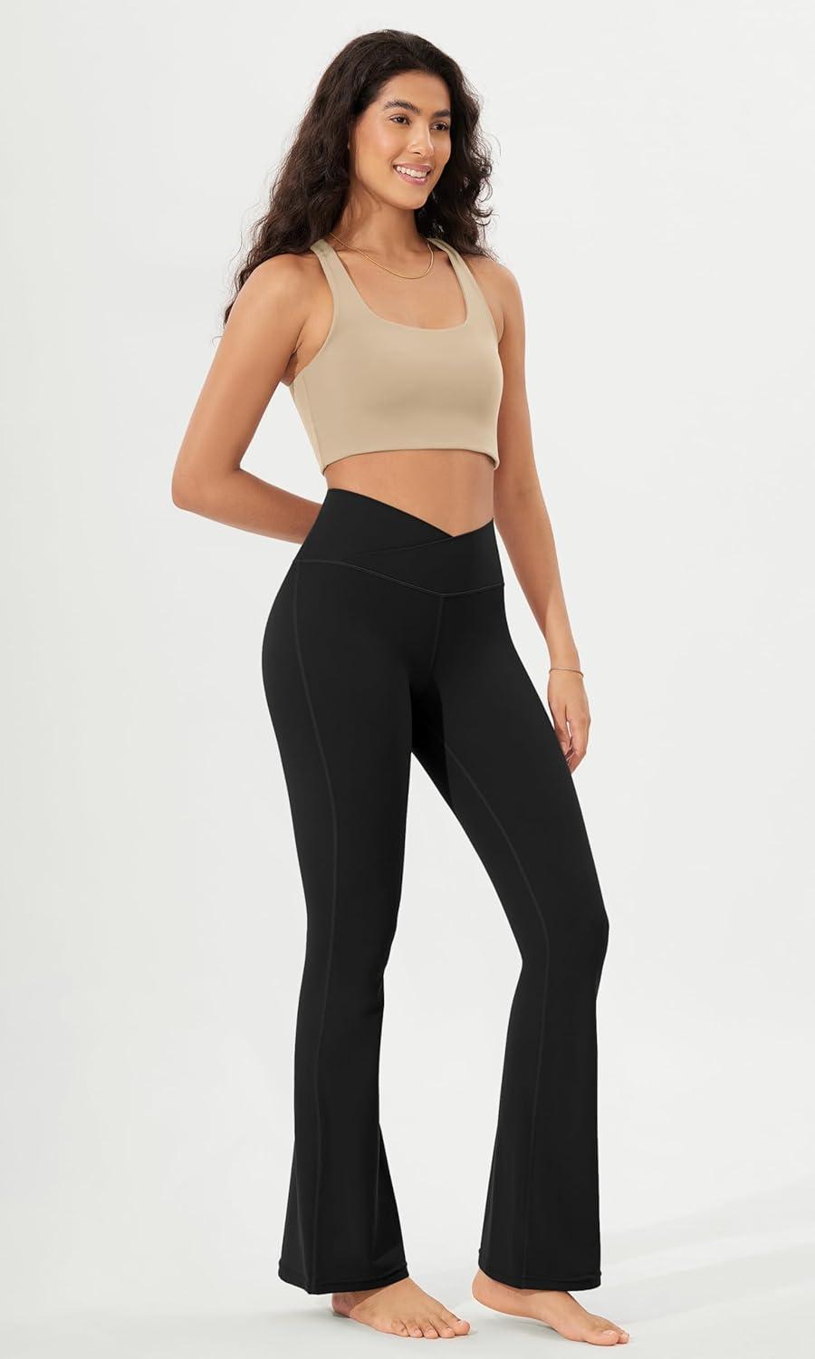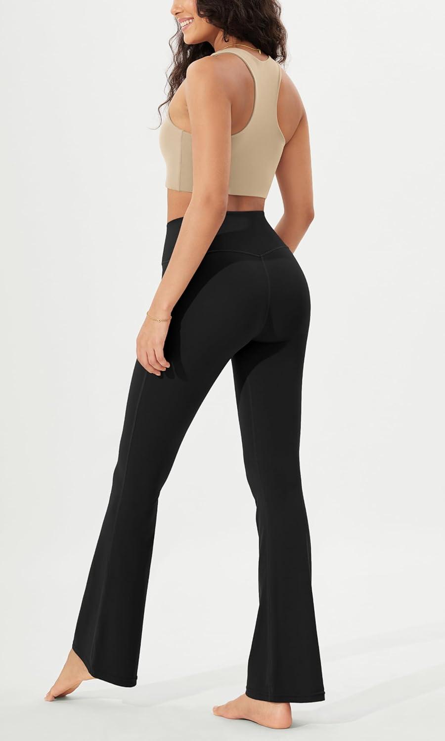 ODODOS Women’s Crossover Flared Yoga Pants Cloud Feeling Soft High Waist Bootcut Leggings with Back Pocket -30″ / 32″ Inseam(Onyx Black Grey)