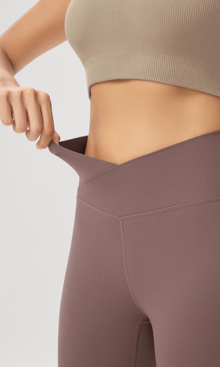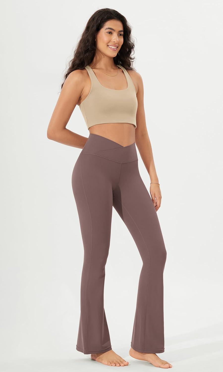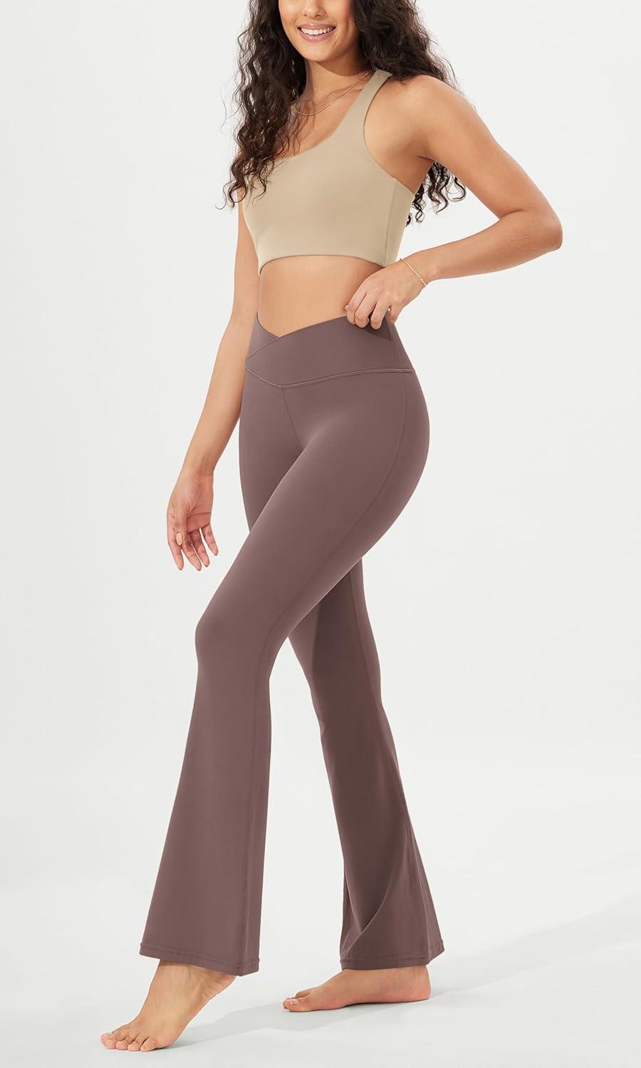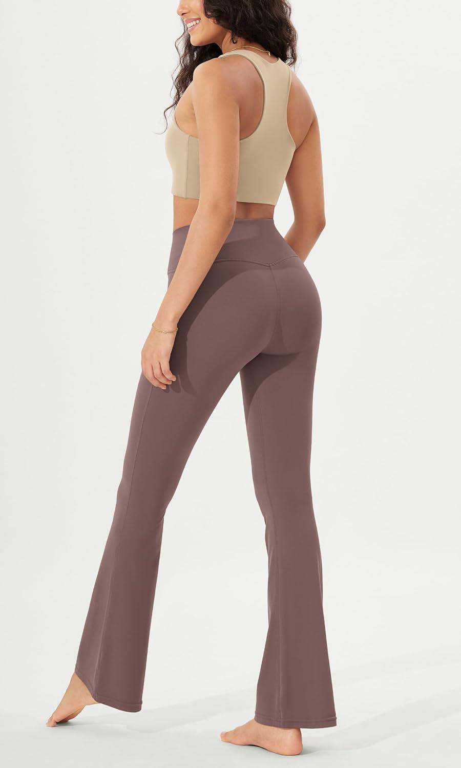 ODODOS Women’s Crossover Flared Yoga Pants Cloud Feeling Soft High Waist Bootcut Leggings with Back Pocket -30″ / 32″ Inseam(Purple Taupe)