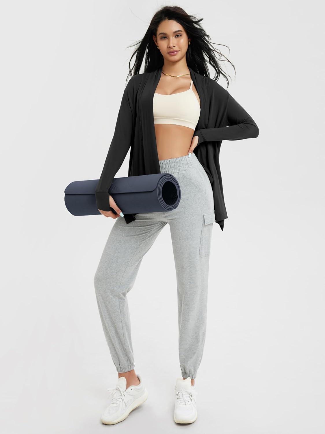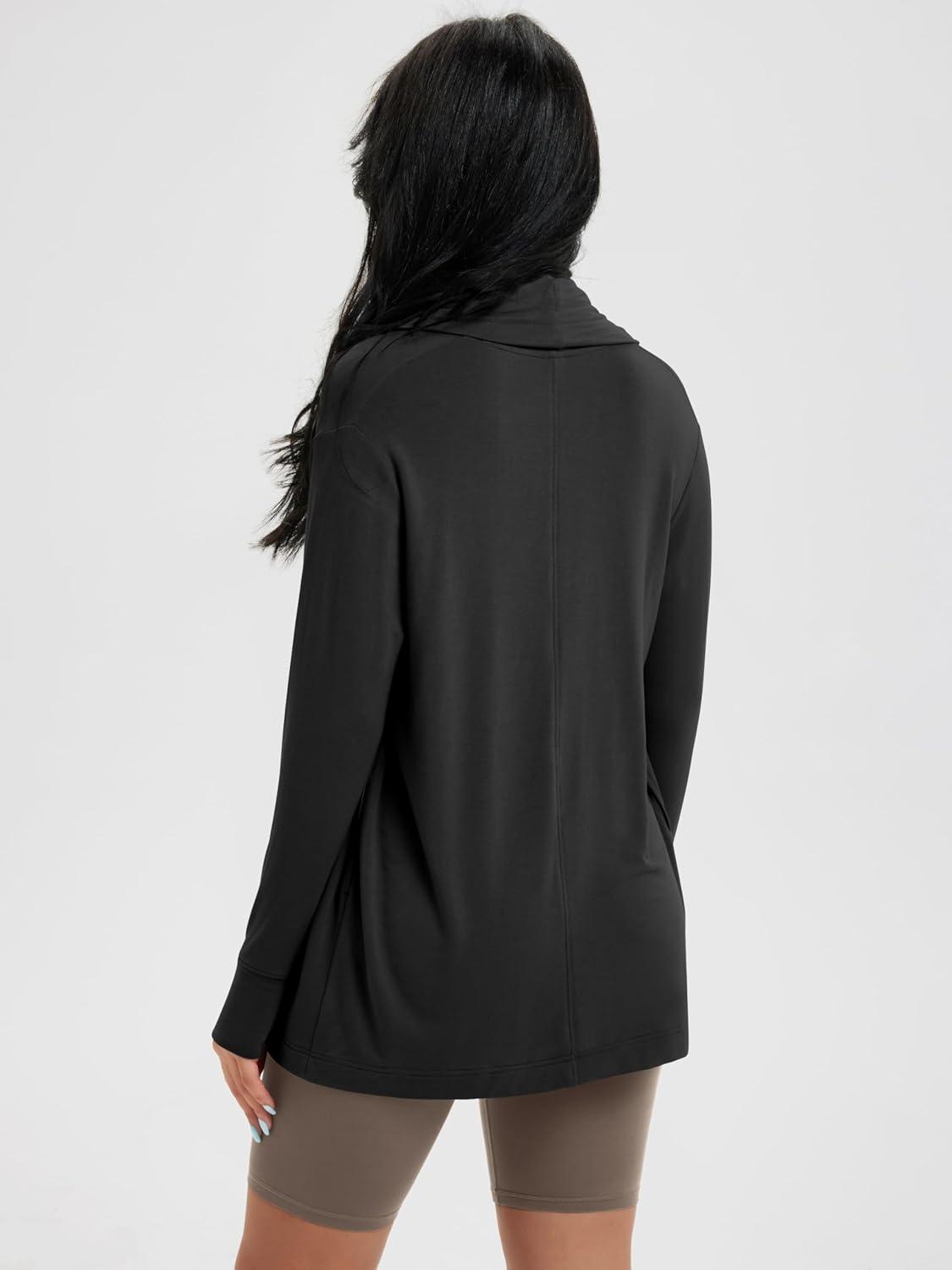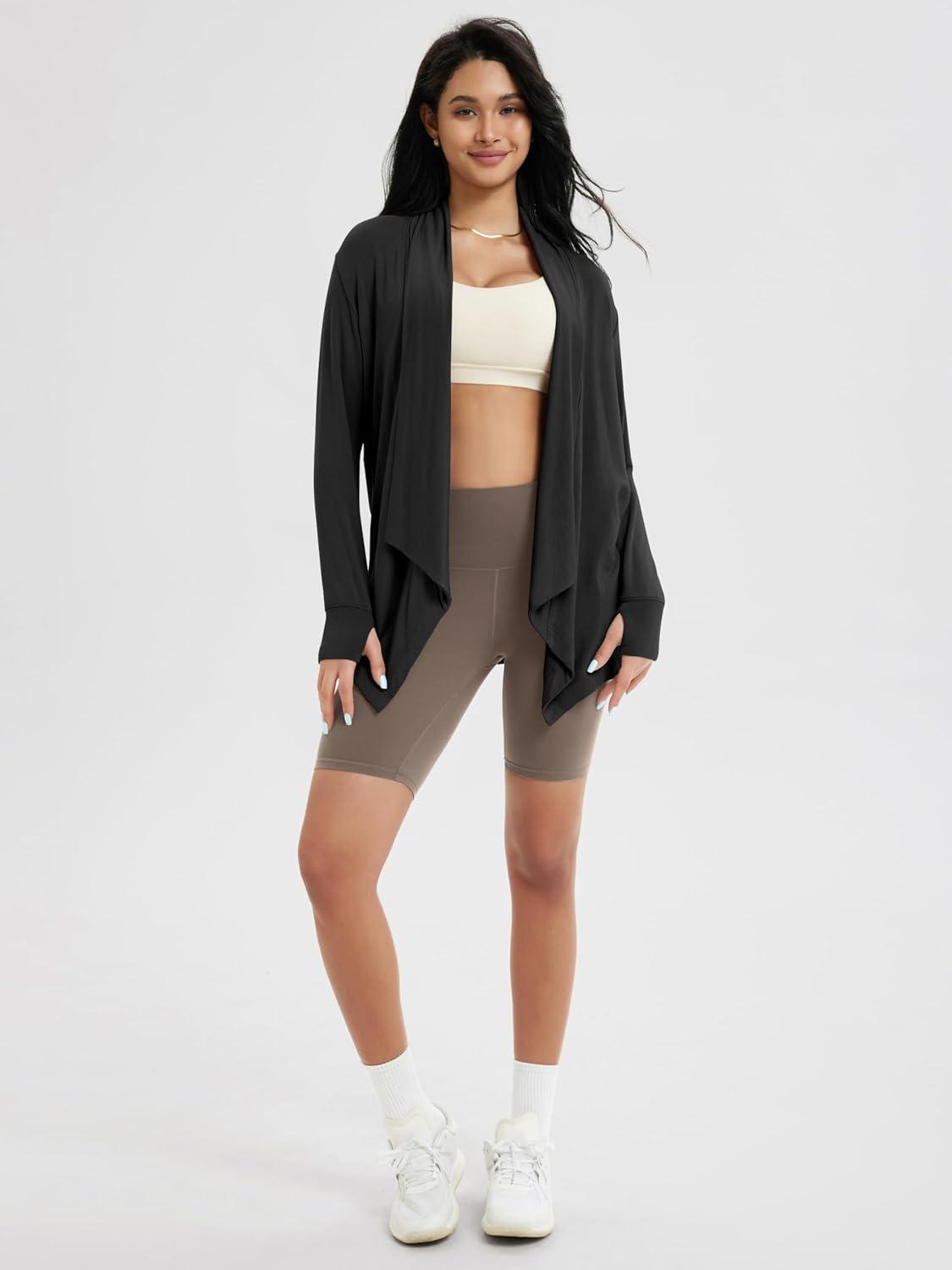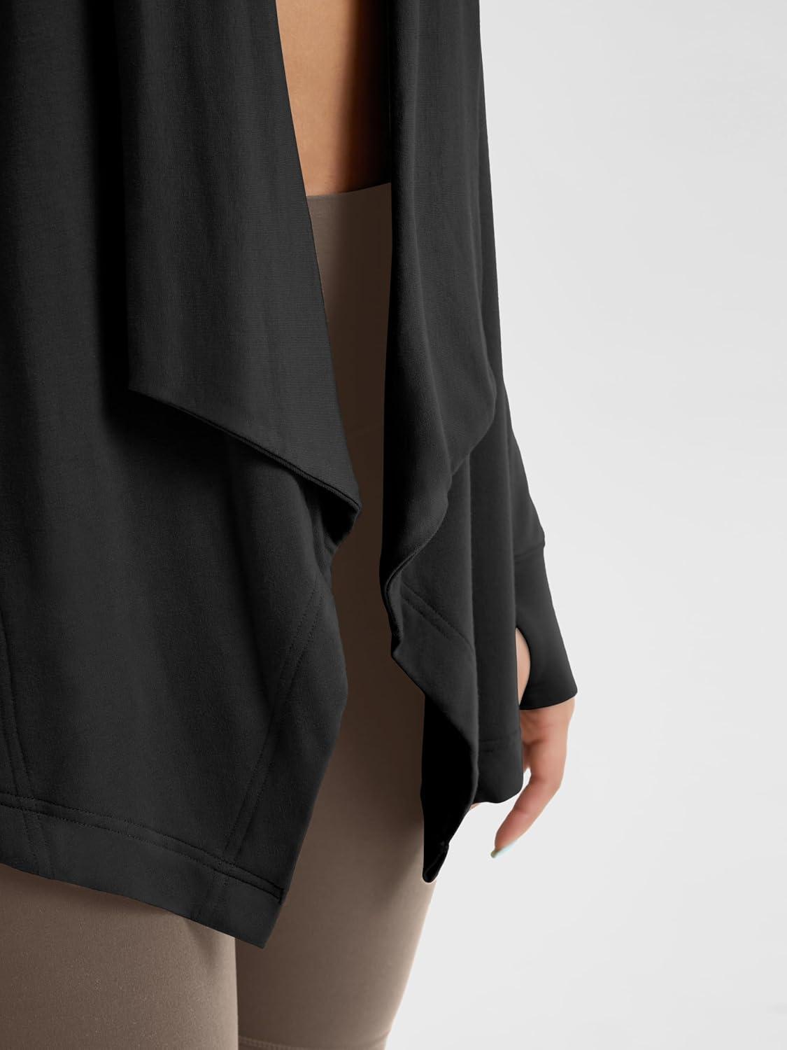 ODODOS Women’s Drape Open Front Cardigans Cozy Soft Long Sleeve Casual Wrap Outerwear with Pockets Thumb Hole(Black)