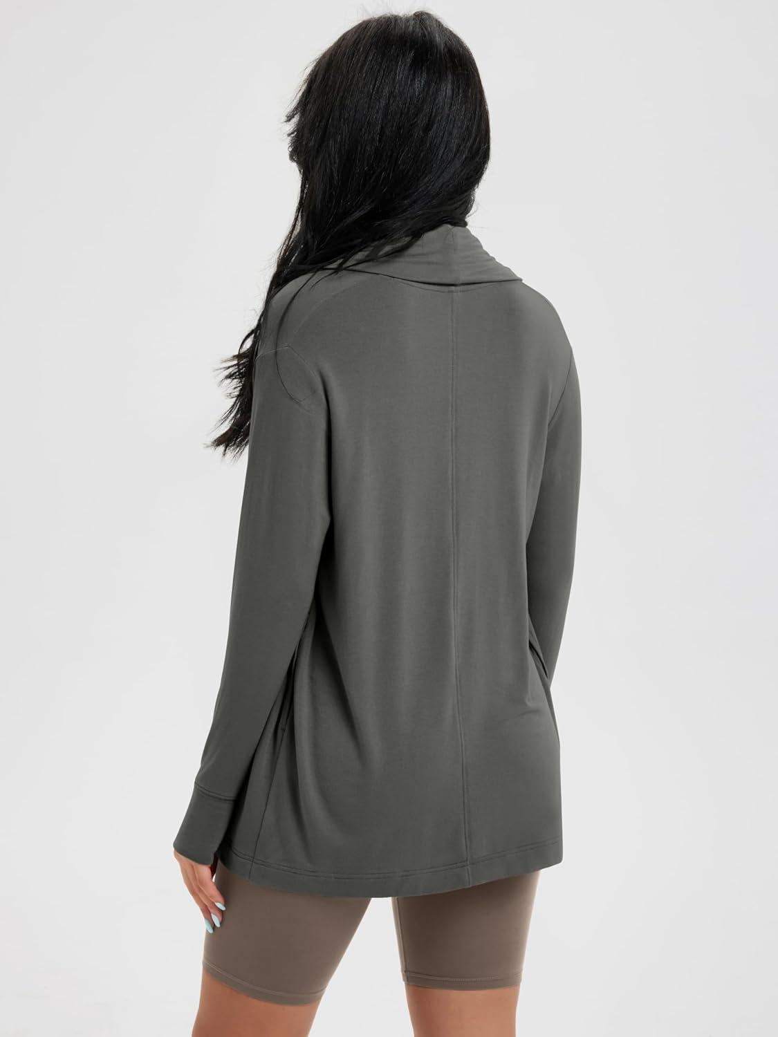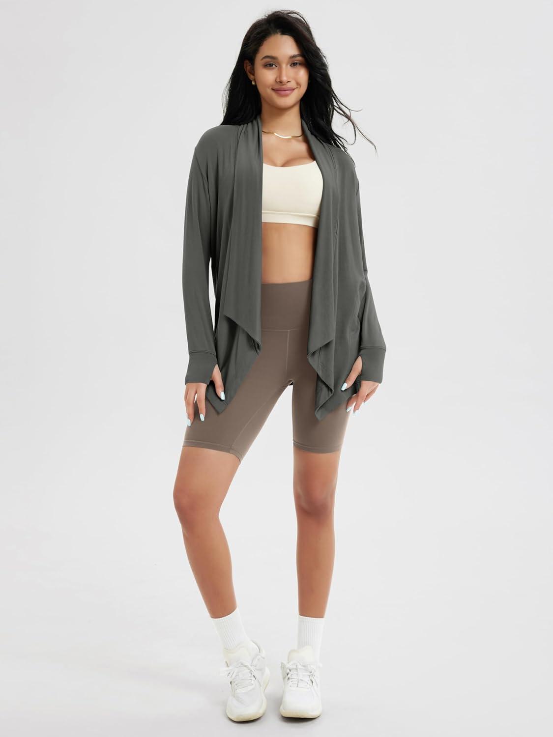 ODODOS Women's Drape Open Front Cardigans Cozy Soft Long Sleeve Casual Wrap Outerwear with Pockets Thumb Hole(Charcoal)