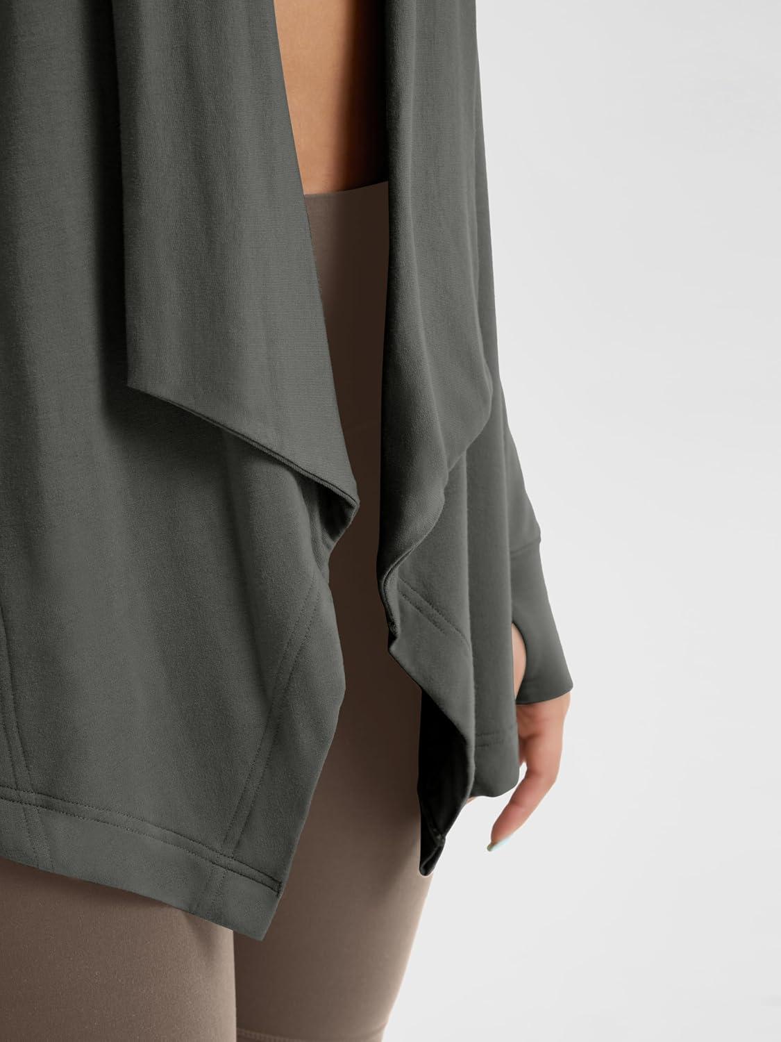 imageODODOS Womens Drape Open Front Cardigans Cozy Soft Long Sleeve Casual Wrap Outerwear with Pockets Thumb HoleCharcoal