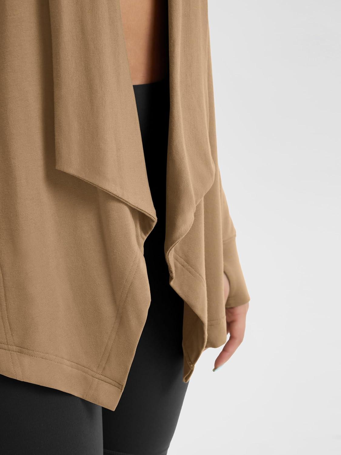 ODODOS Women's Drape Open Front Cardigans Cozy Soft Long Sleeve Casual Wrap Outerwear with Pockets Thumb Hole(Mustard Gold)