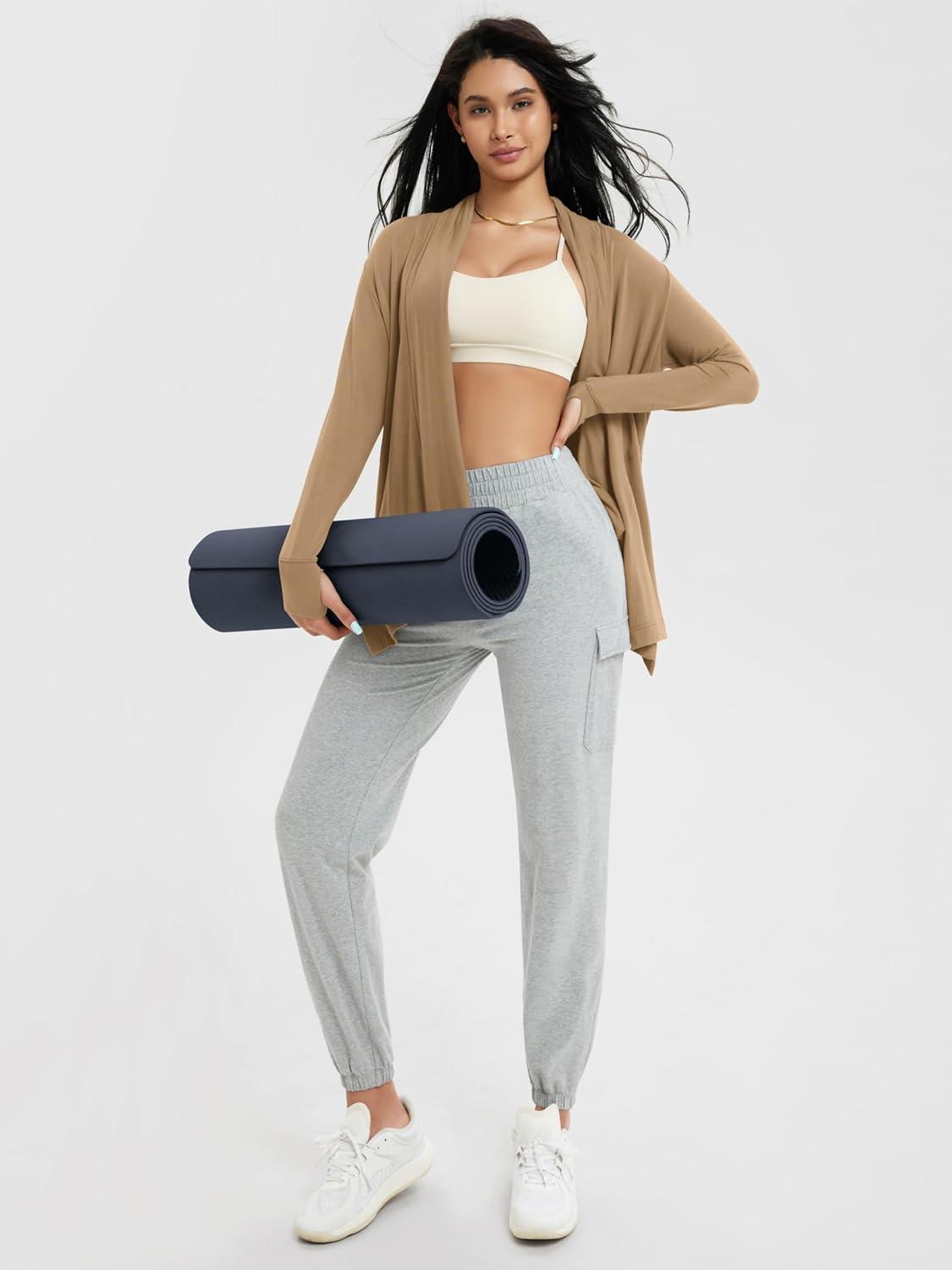 imageODODOS Womens Drape Open Front Cardigans Cozy Soft Long Sleeve Casual Wrap Outerwear with Pockets Thumb HoleGrey Heather