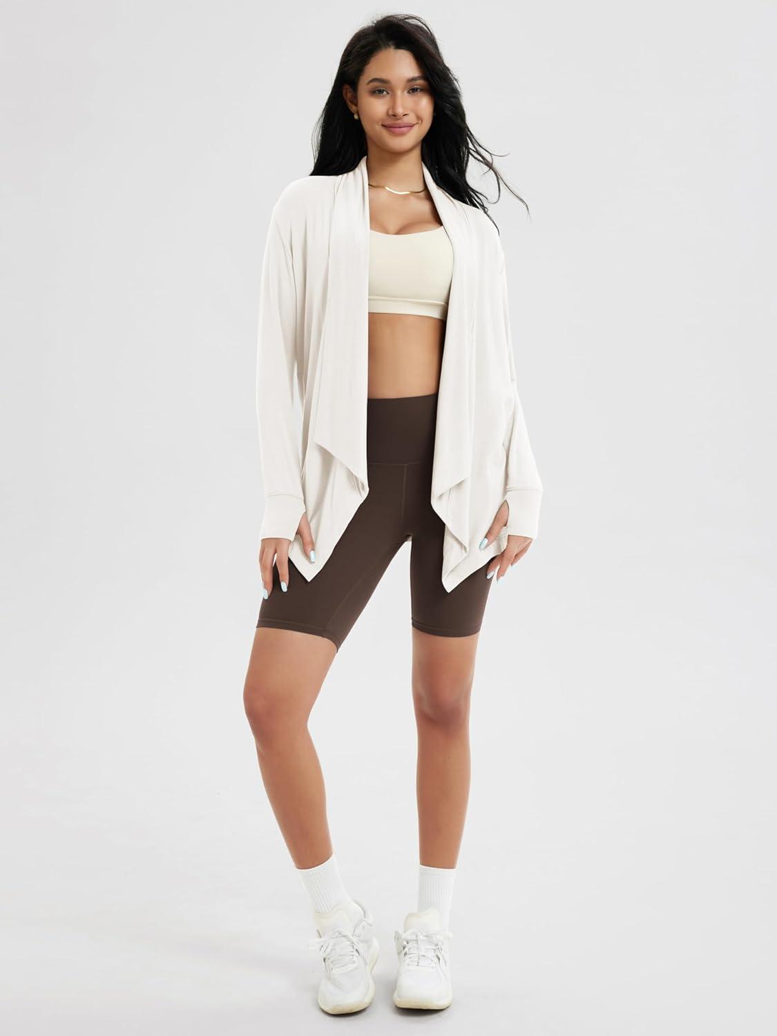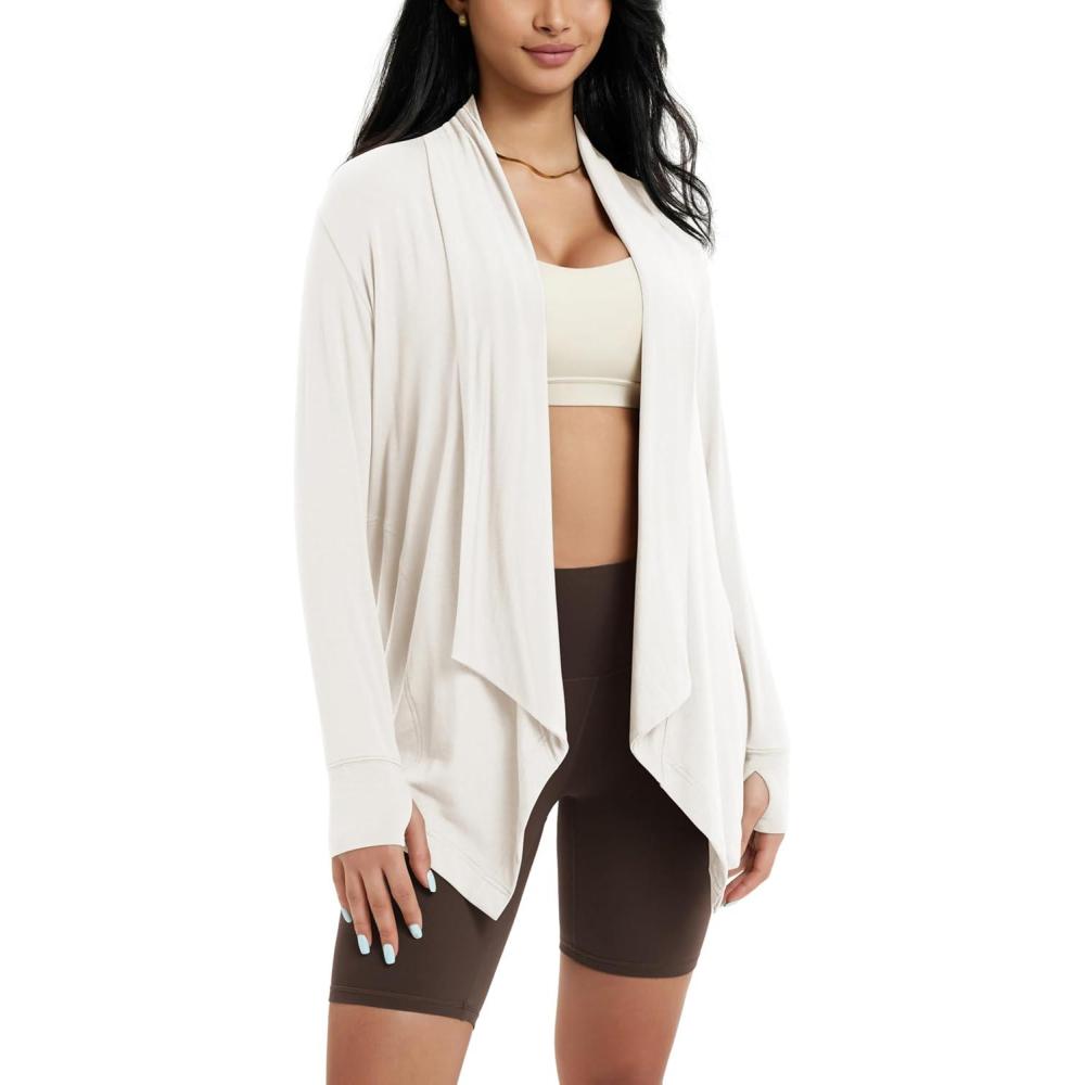 ODODOS Women's Drape Open Front Cardigans Cozy Soft Long Sleeve Casual Wrap Outerwear with Pockets Thumb Hole(White)