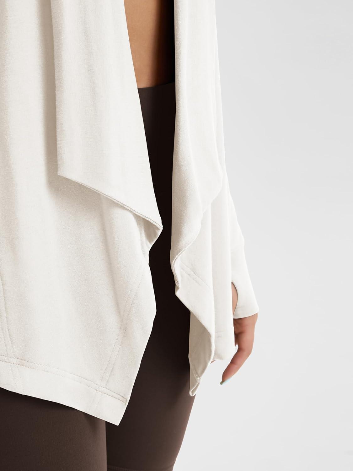 imageODODOS Womens Drape Open Front Cardigans Cozy Soft Long Sleeve Casual Wrap Outerwear with Pockets Thumb HoleWhite
