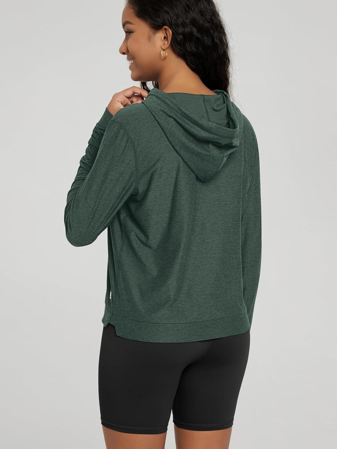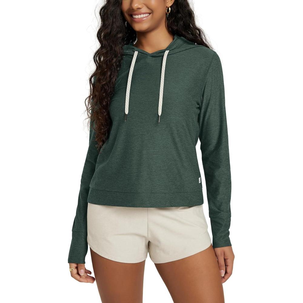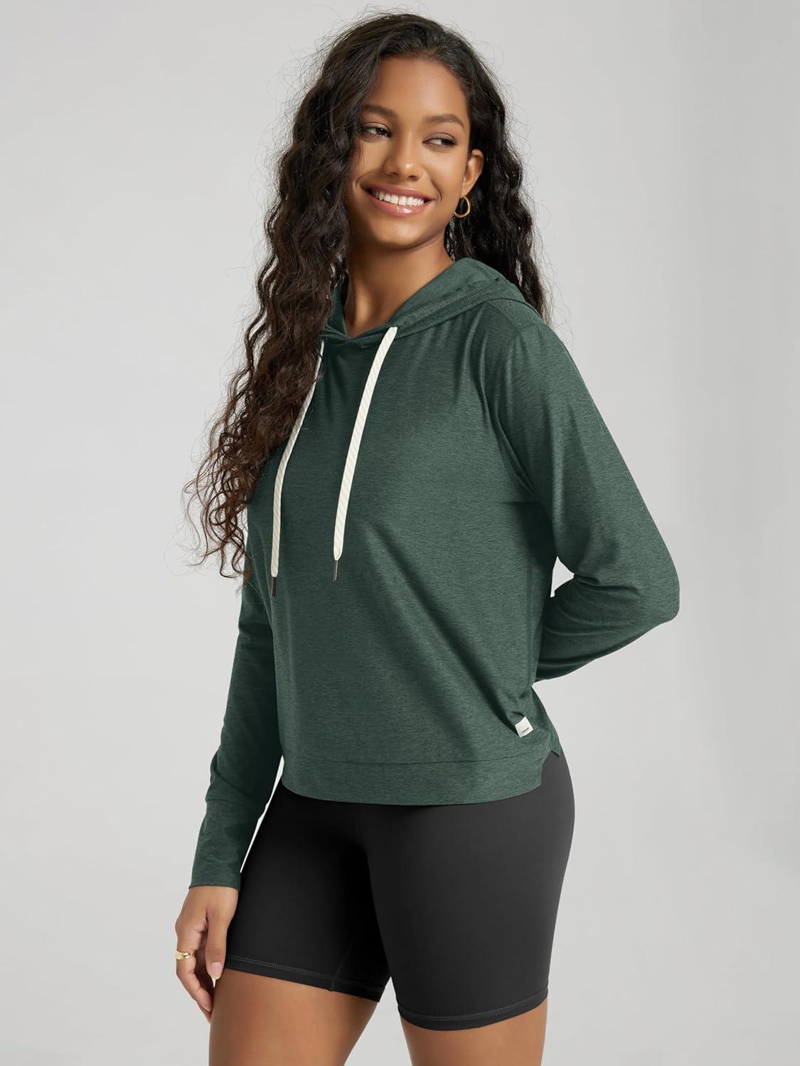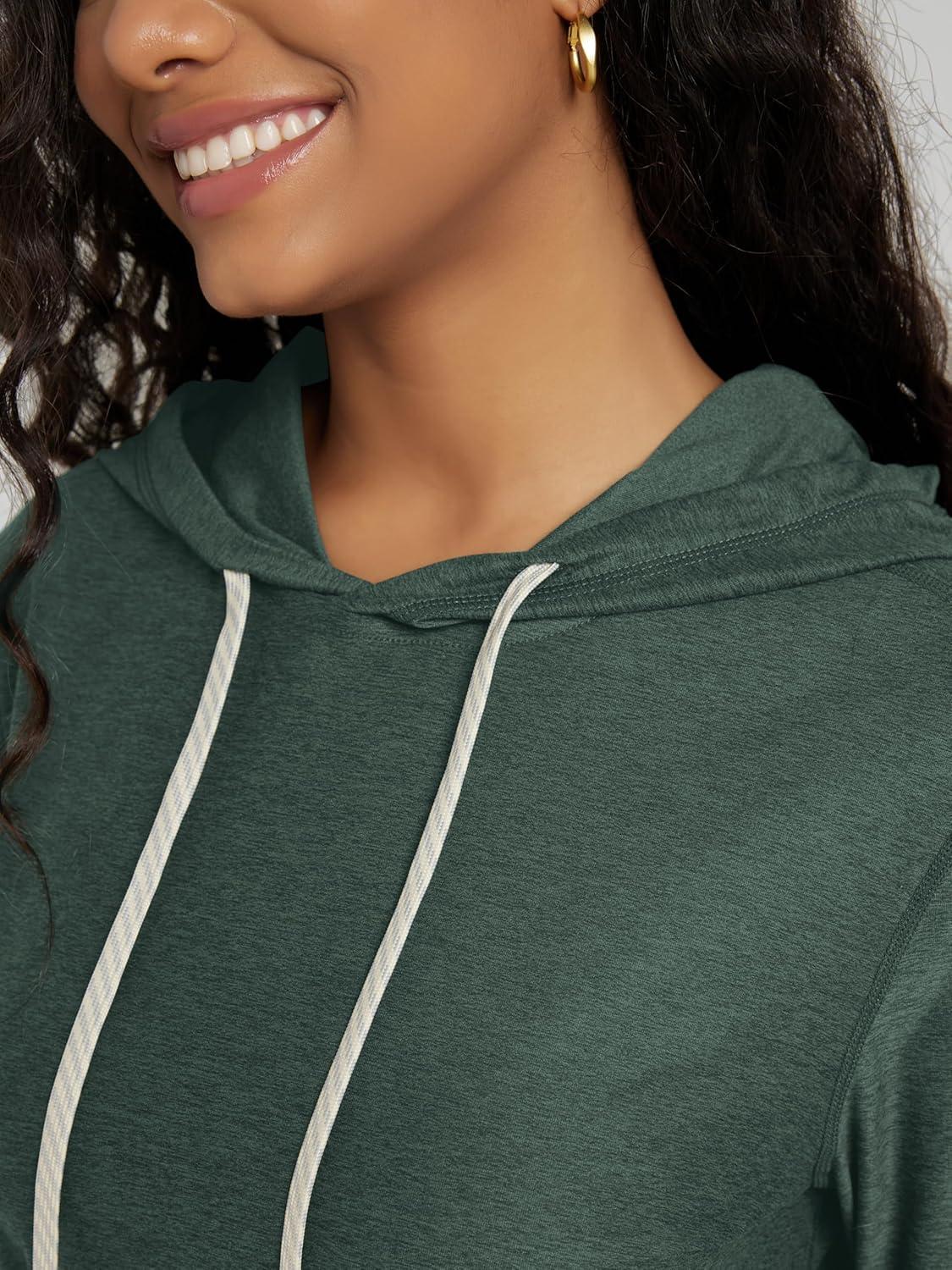 ODODOS Women’s Essential Hoodie – Ultra Soft Stratum Tech Pullover UPF 50+ Moisture Wicking Long Sleeve Top(Aspen Heather)