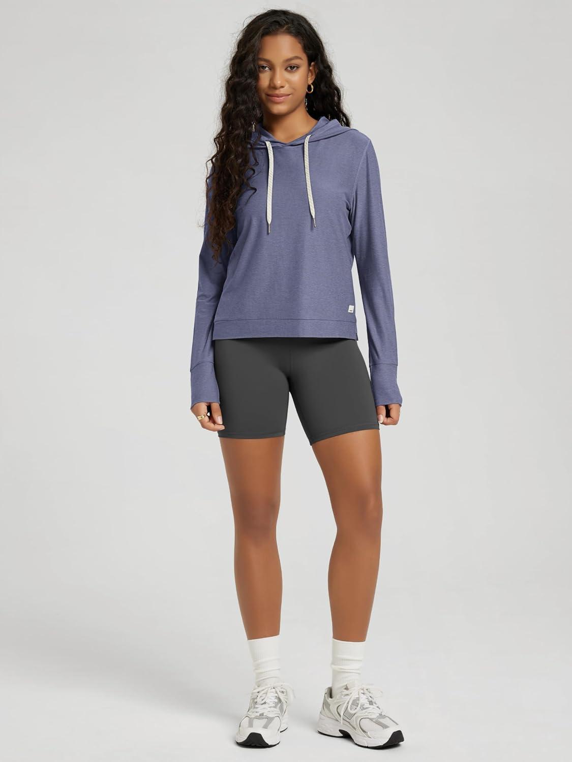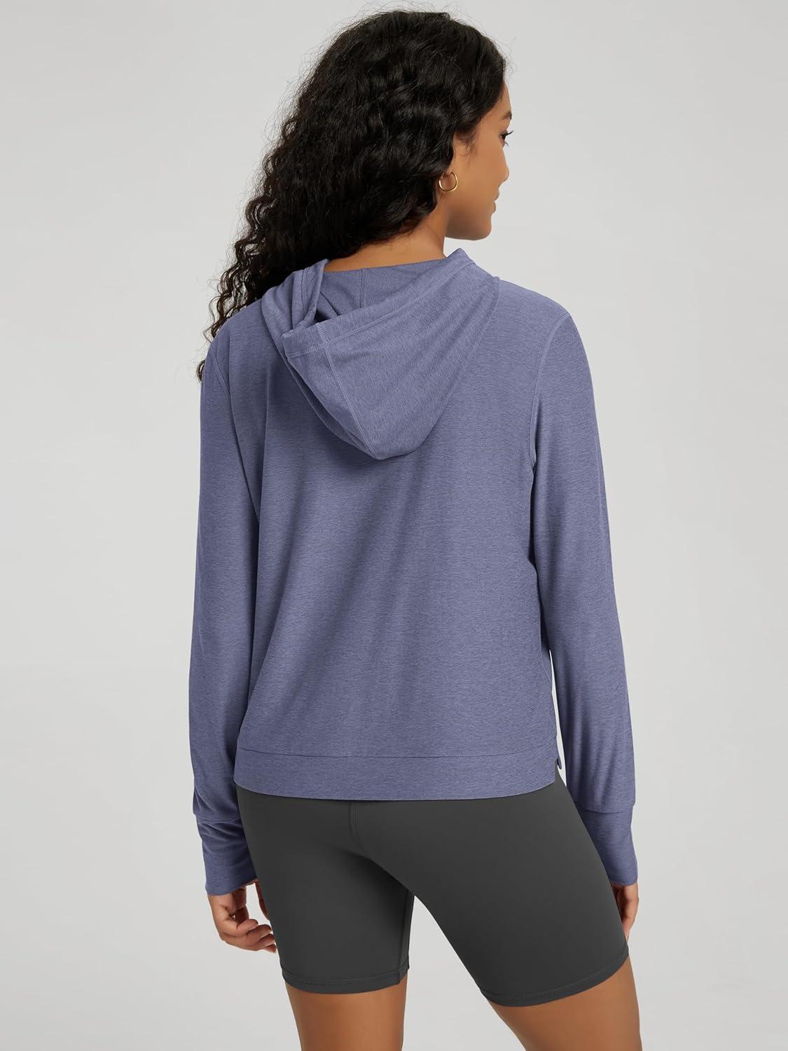 ODODOS Women’s Essential Hoodie – Ultra Soft Stratum Tech Pullover UPF 50+ Moisture Wicking Long Sleeve Top(Dusty Blue Heather)