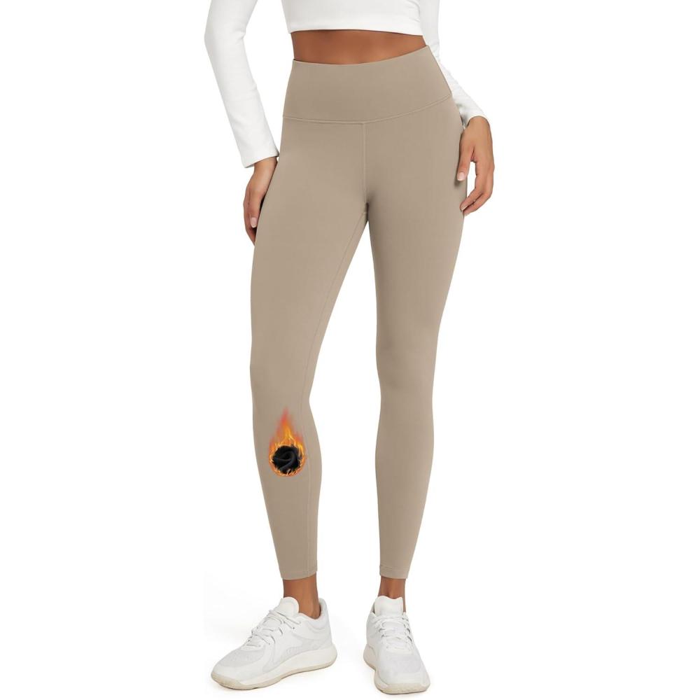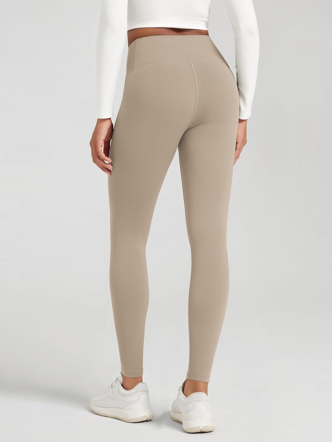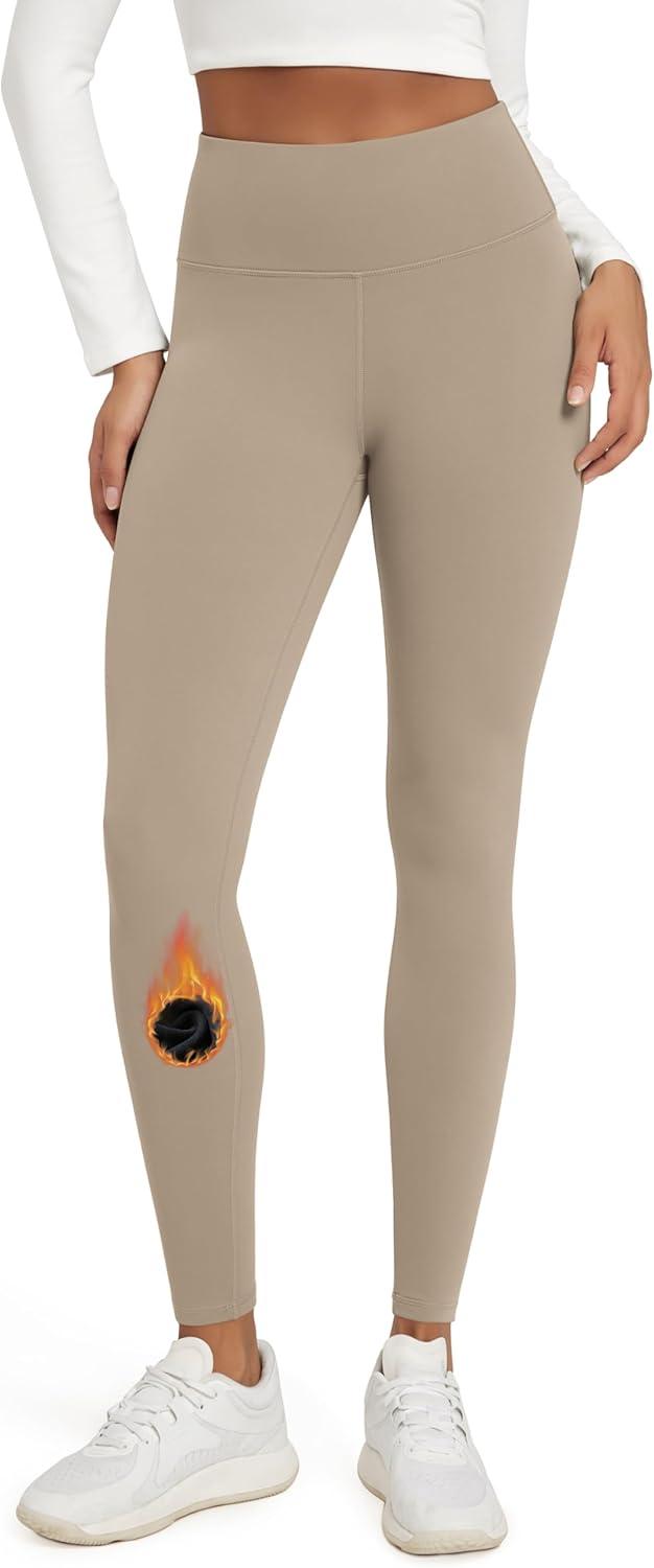 ODODOS Women’s Fleece Lined Leggings Thermal Warm Winter Tights – 25″ / 28″ High Waisted Thick Yoga Pants with Back Pockets(Dark Beige)