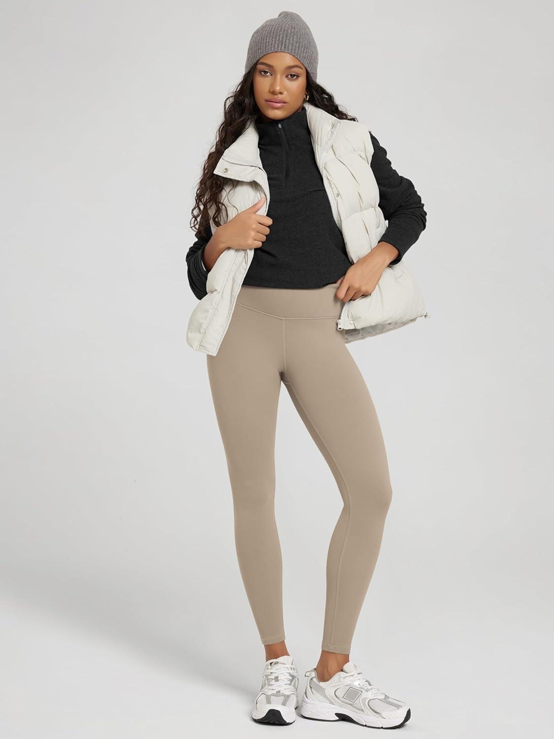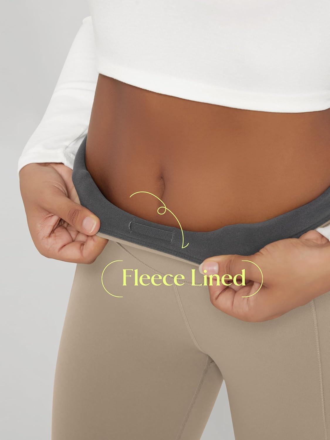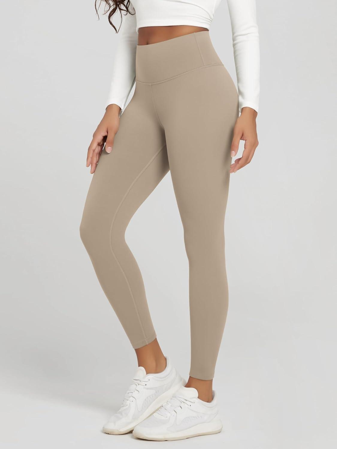 ODODOS Women’s Fleece Lined Leggings Thermal Warm Winter Tights – 25″ / 28″ High Waisted Thick Yoga Pants with Back Pockets(Dark Beige)