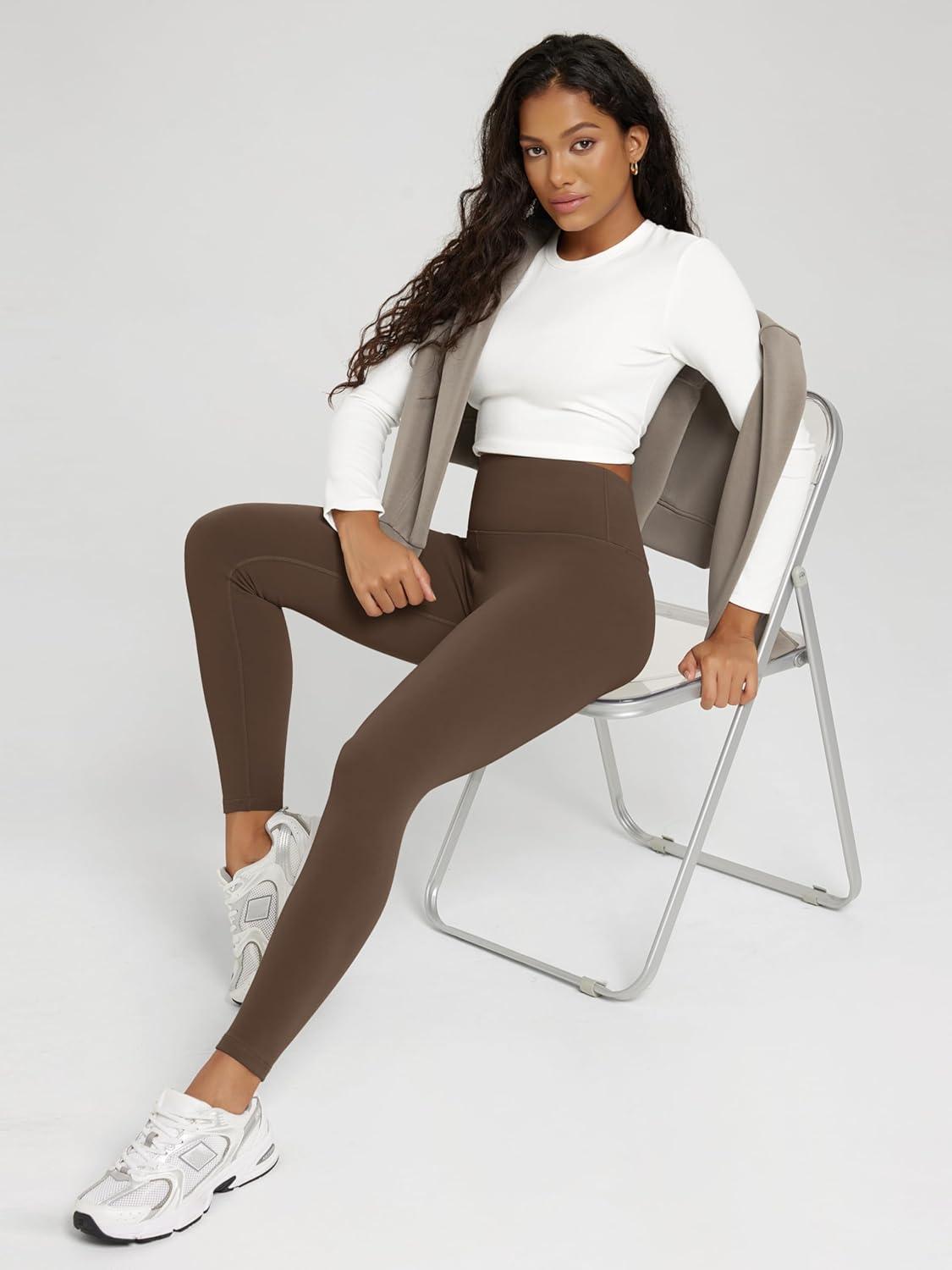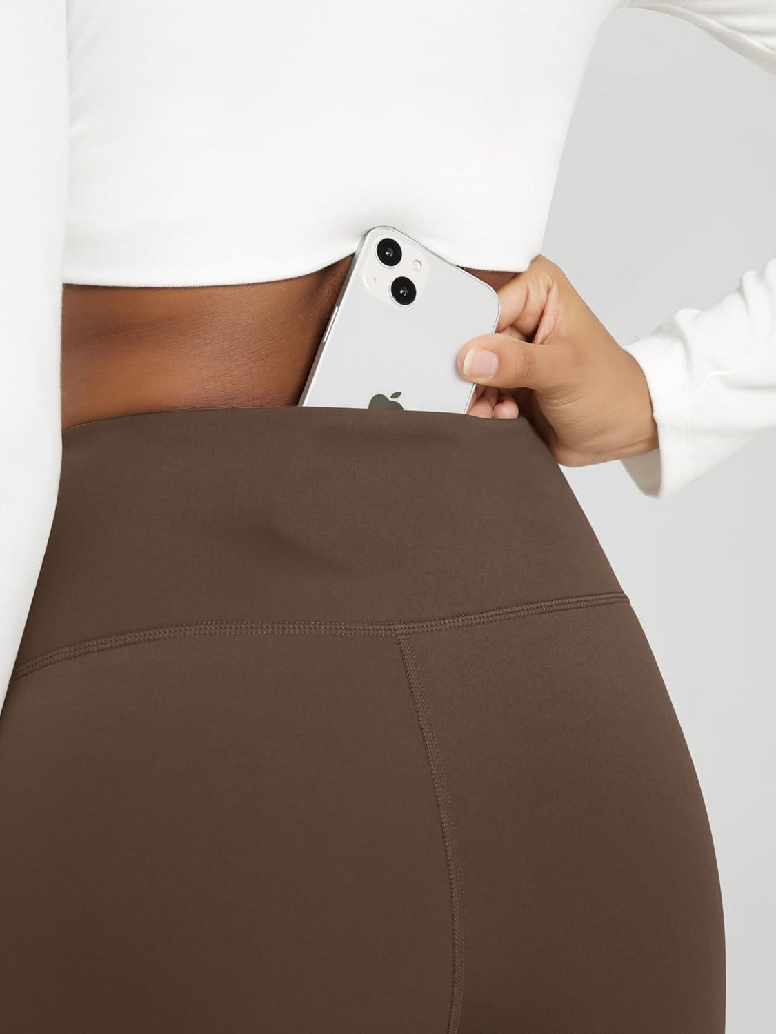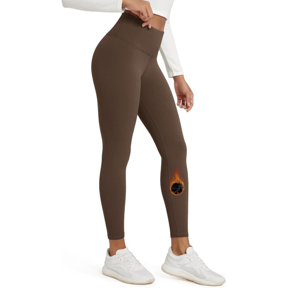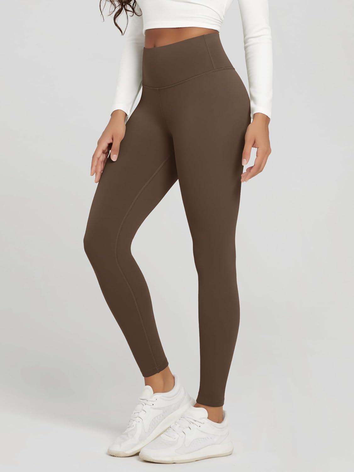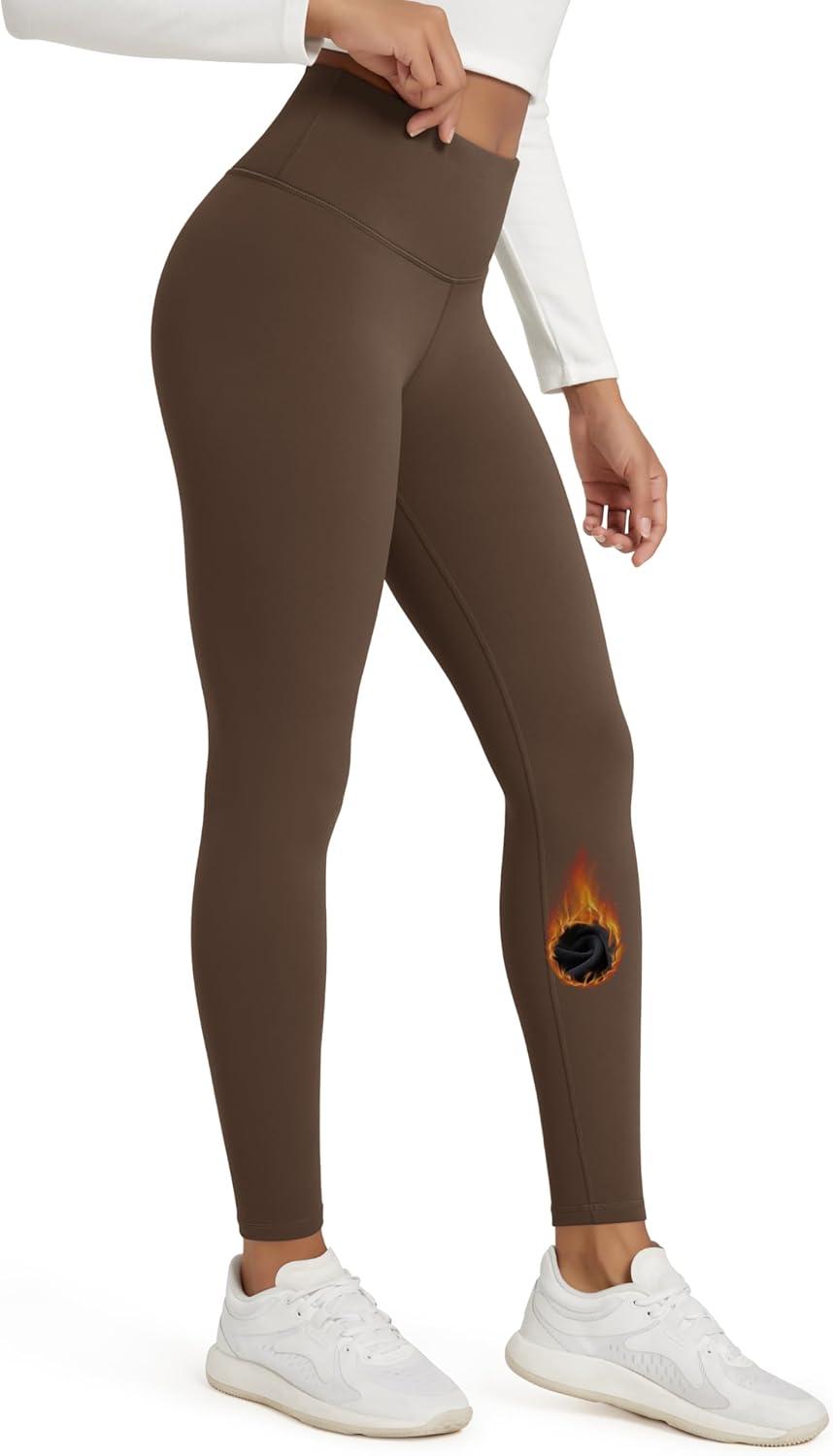 ODODOS Women’s Fleece Lined Leggings Thermal Warm Winter Tights – 25″ / 28″ High Waisted Thick Yoga Pants with Back Pockets(Dark Brown)