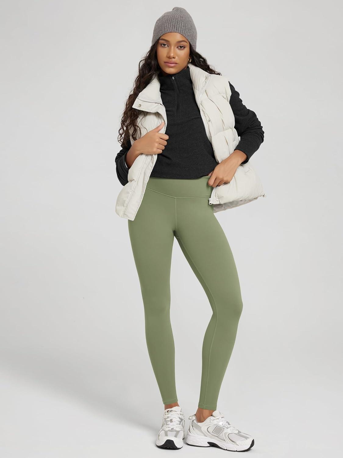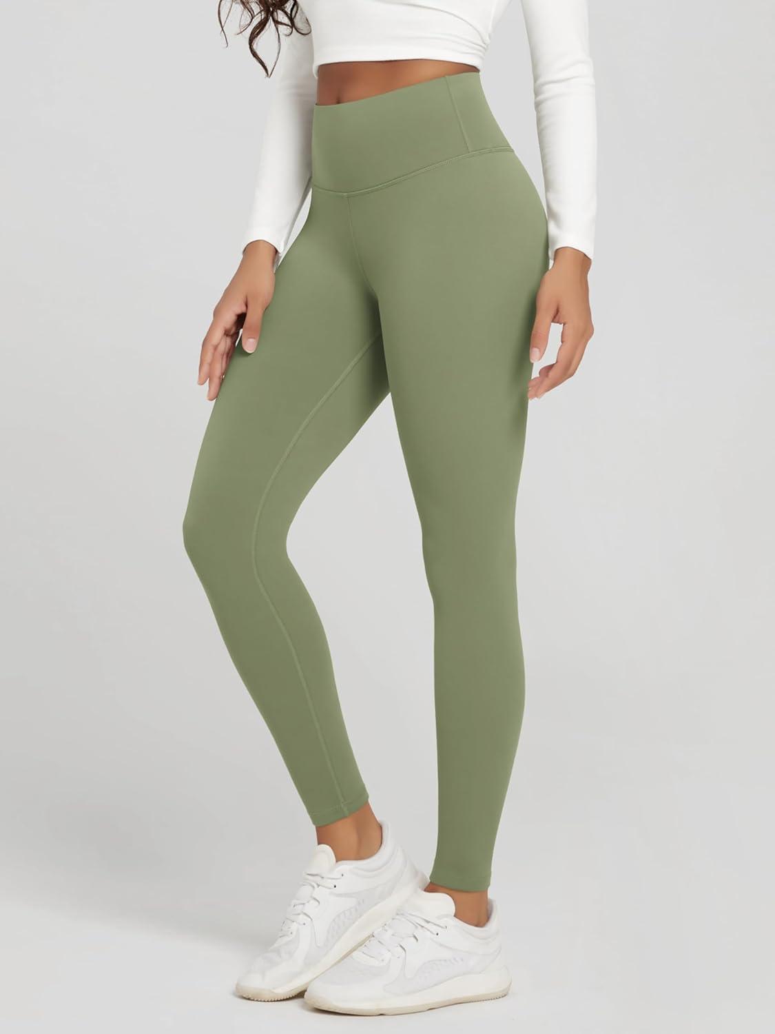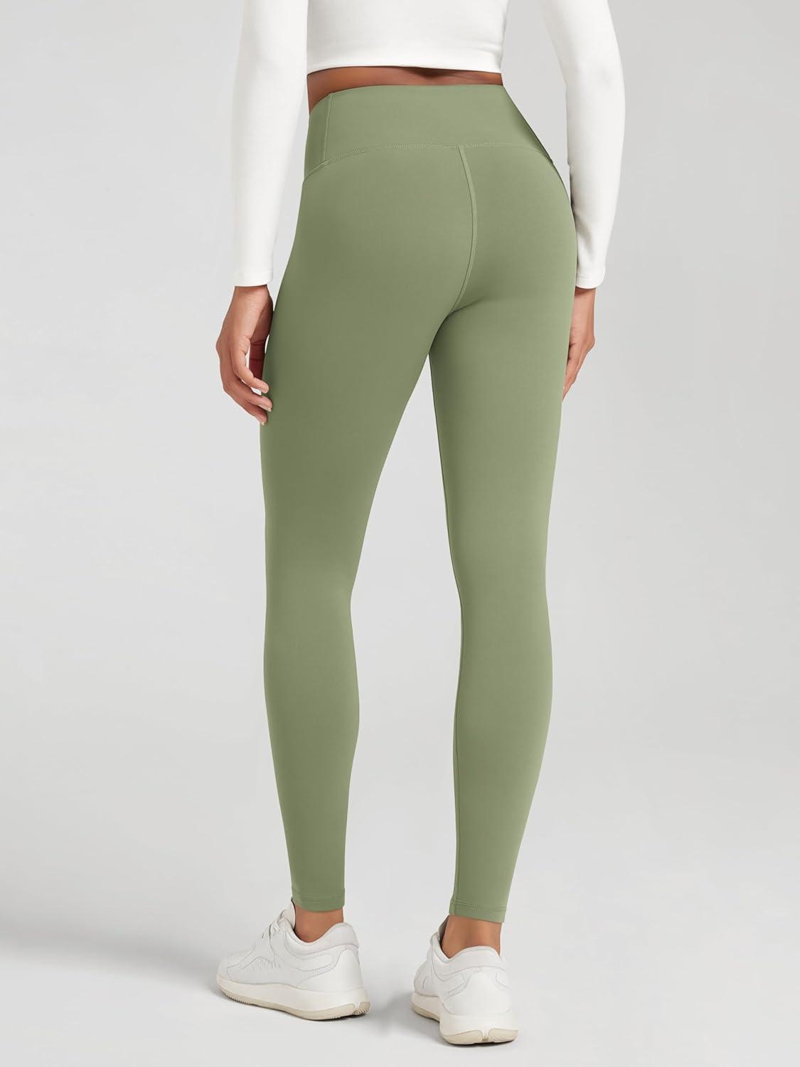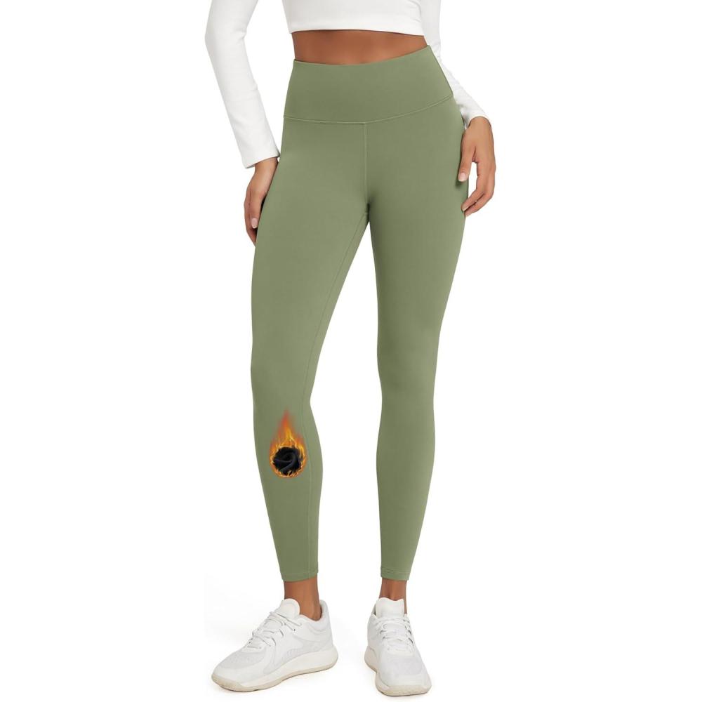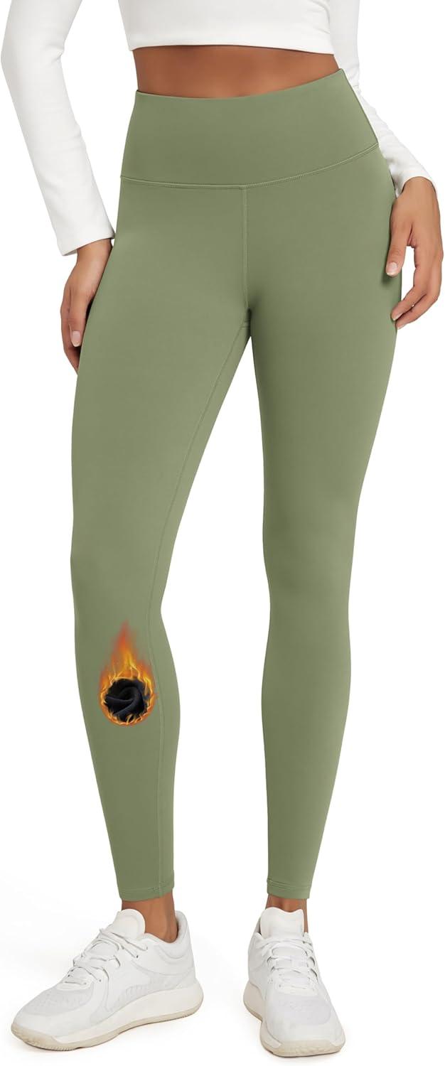 ODODOS Women’s Fleece Lined Leggings Thermal Warm Winter Tights – 25″ / 28″ High Waisted Thick Yoga Pants with Back Pockets(Dark Olive)