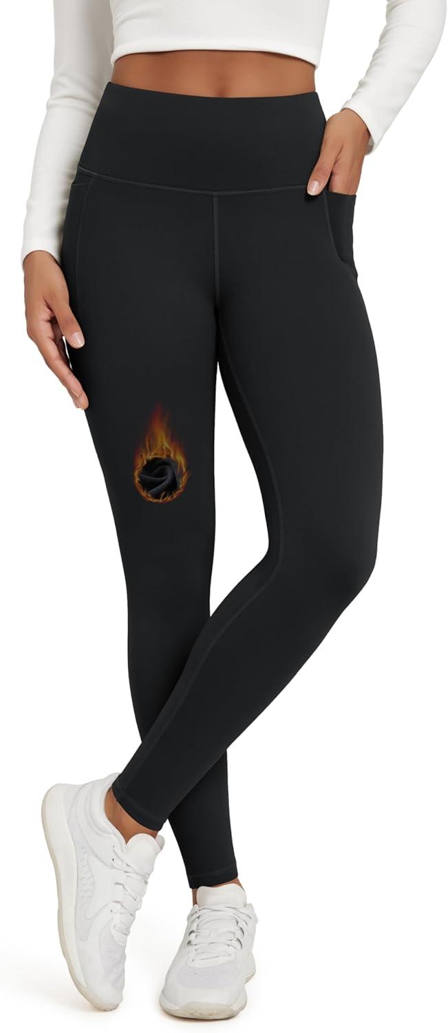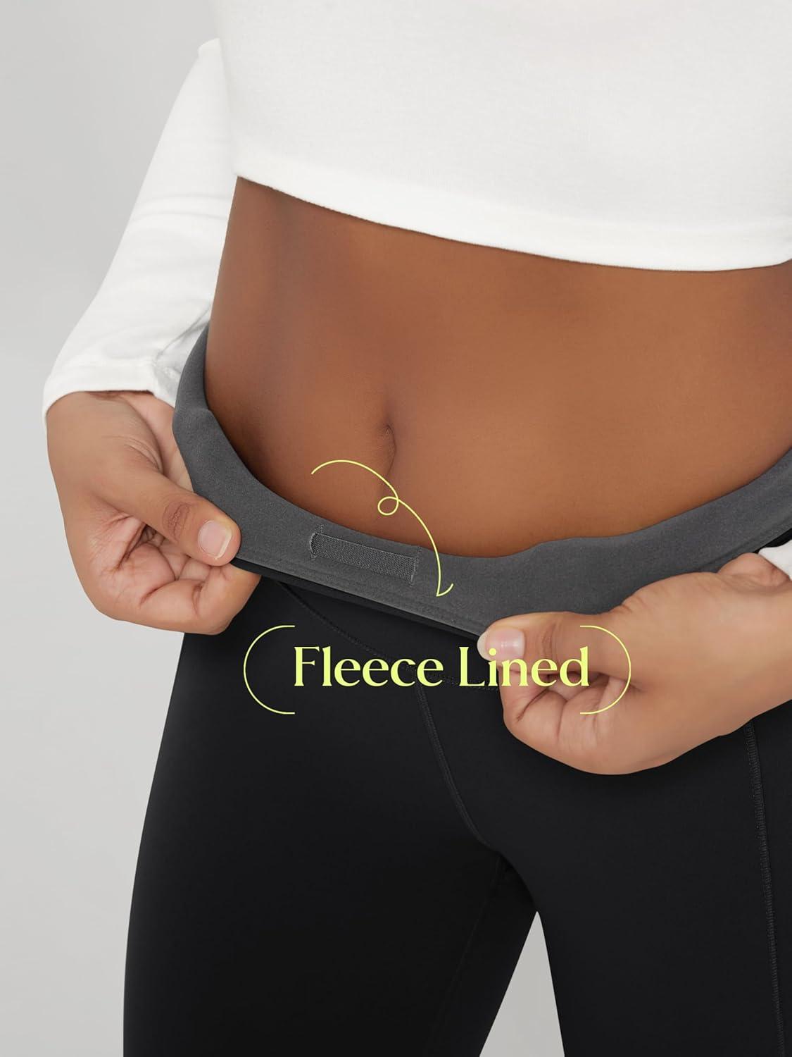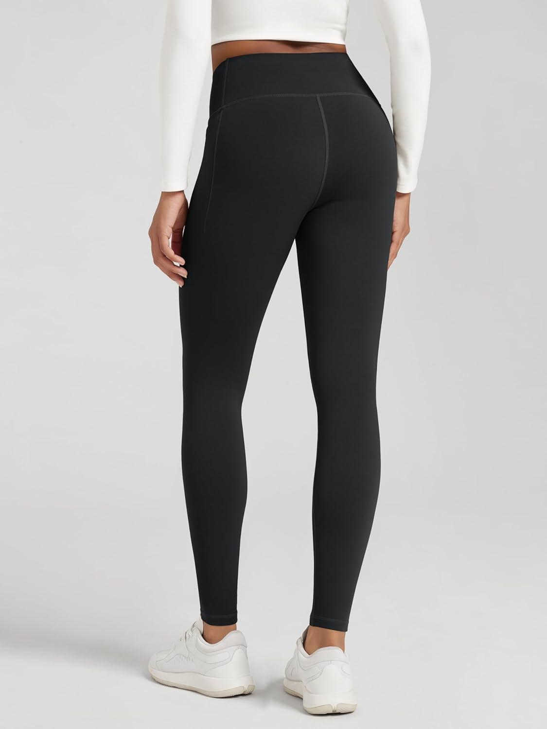 ODODOS Women’s Fleece Lined Leggings with Pockets Thermal Warm Winter Tights – 25″ / 28″ High Waisted Thick Yoga Pants(Black)