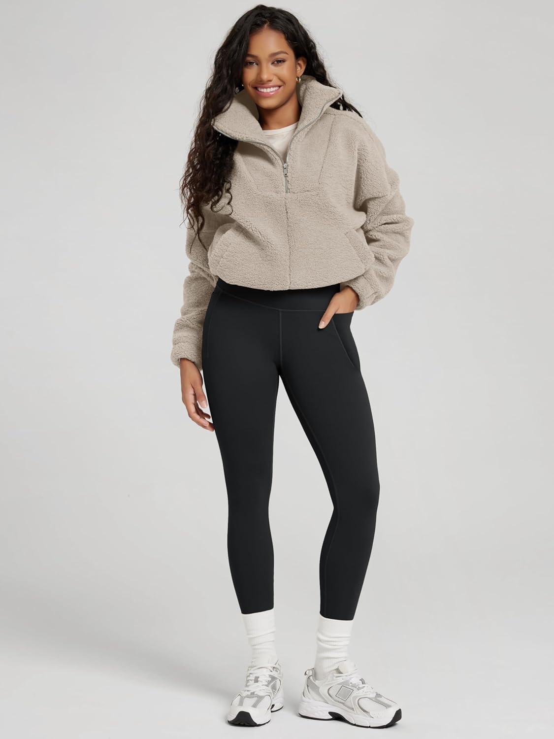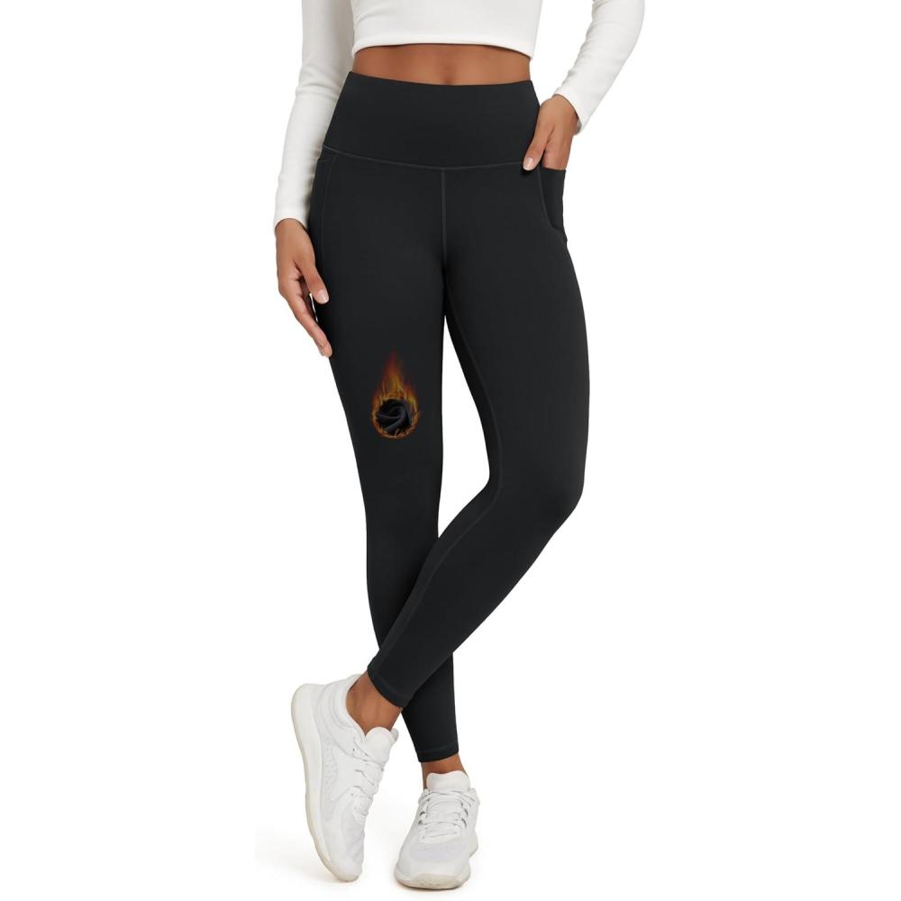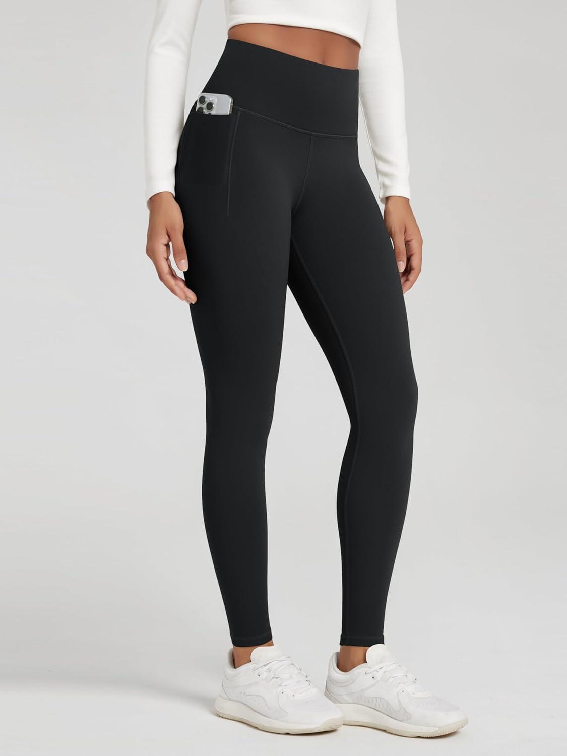 ODODOS Women’s Fleece Lined Leggings with Pockets Thermal Warm Winter Tights – 25″ / 28″ High Waisted Thick Yoga Pants(Black)