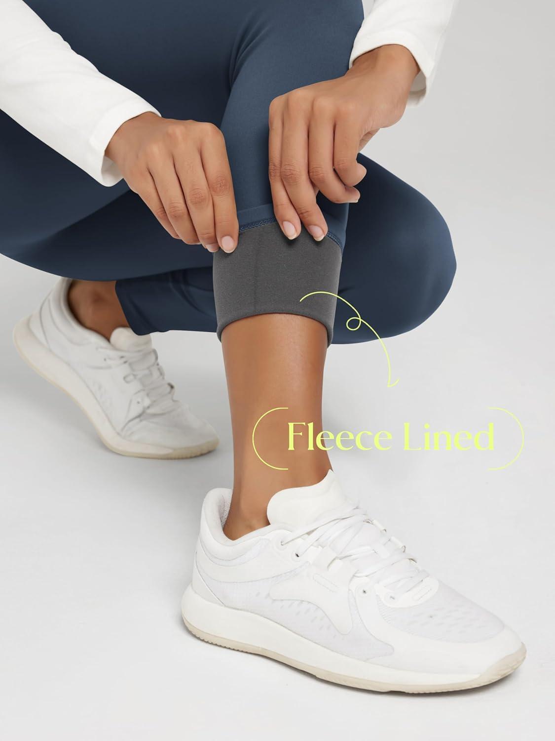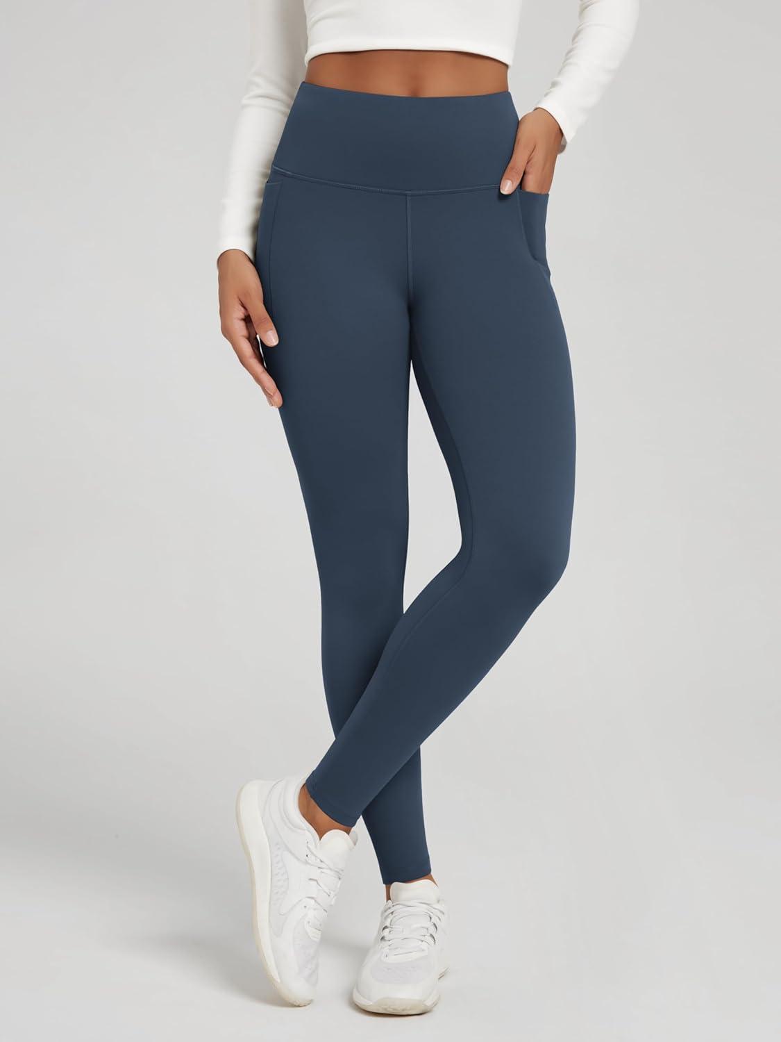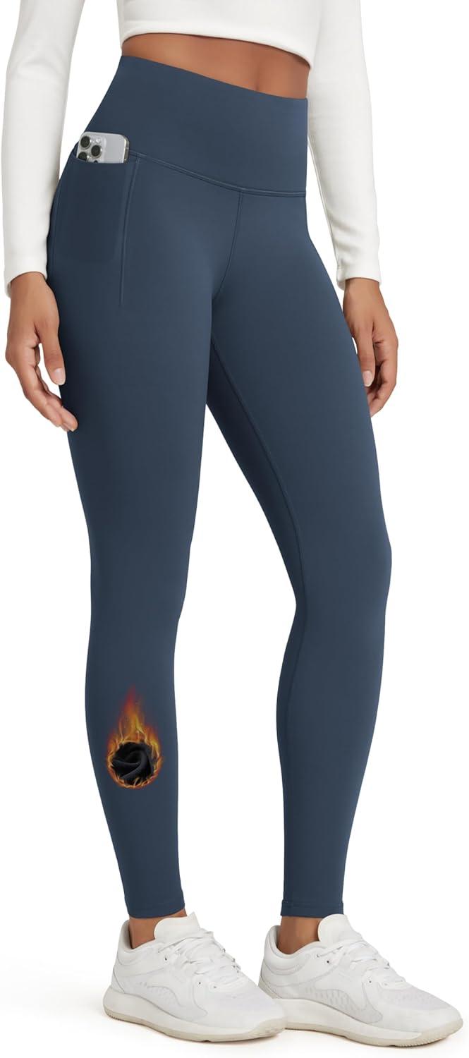 ODODOS Women’s Fleece Lined Leggings with Pockets Thermal Warm Winter Tights – 25″ / 28″ High Waisted Thick Yoga Pants(Navy)
