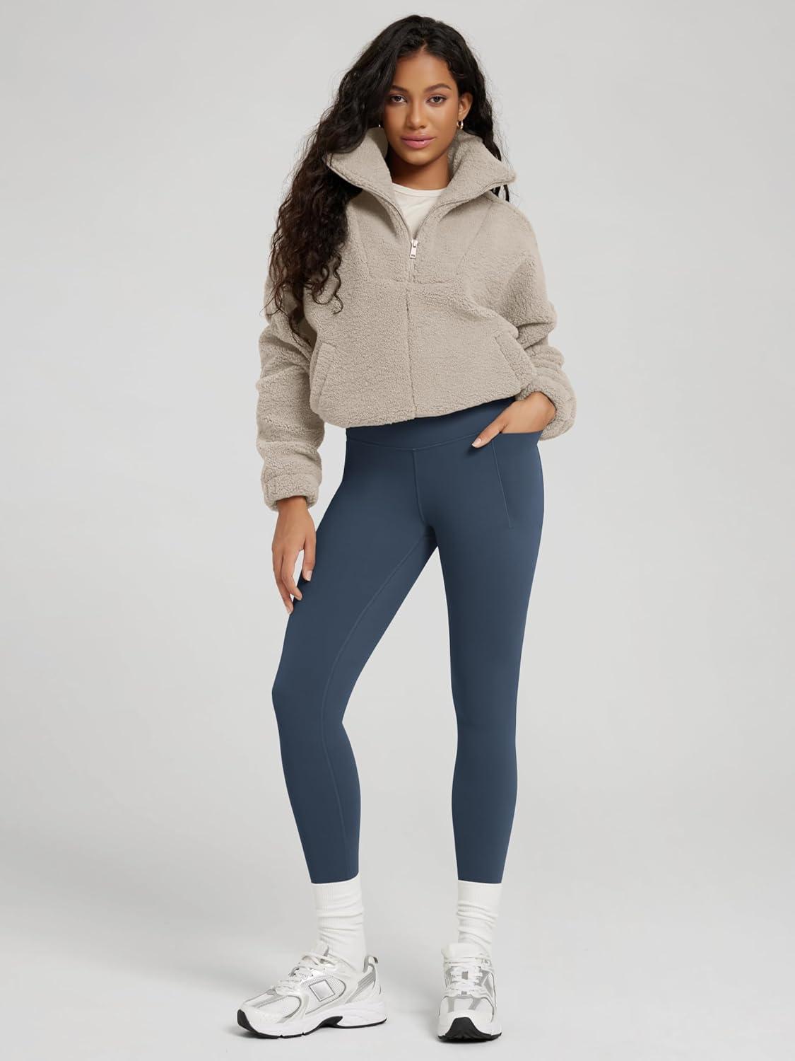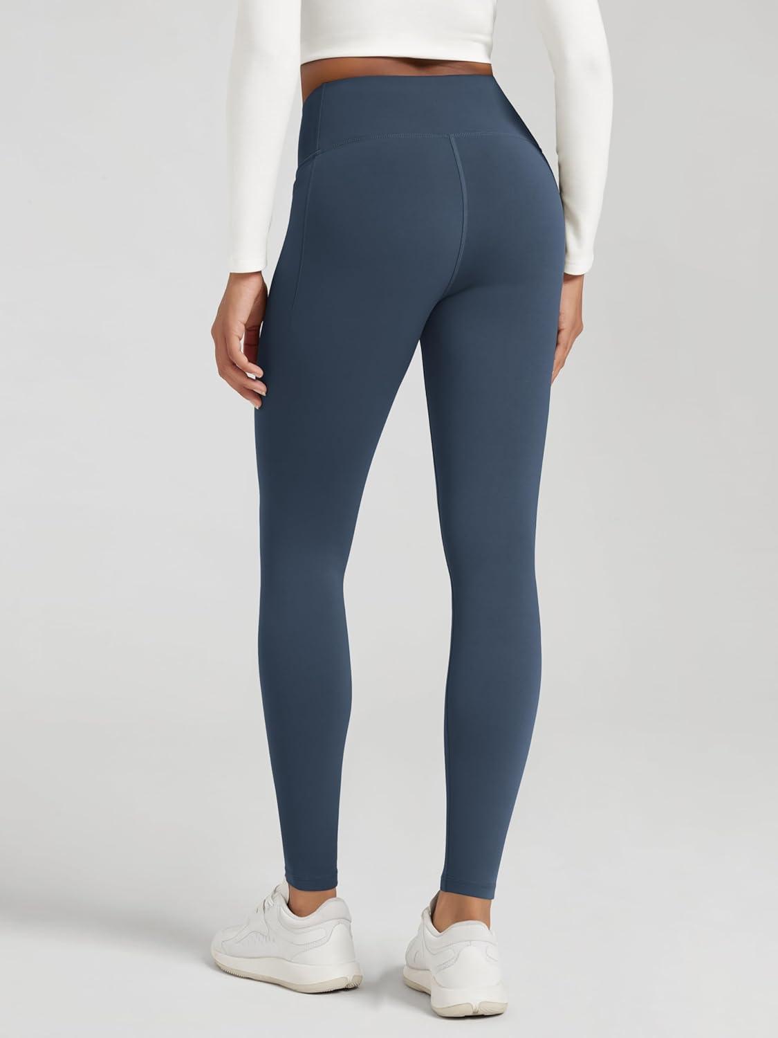 imageODODOS Womens Fleece Lined Leggings with Pockets Thermal Warm Winter Tights  25quot  28quot High Waisted Thick Yoga PantsNavy