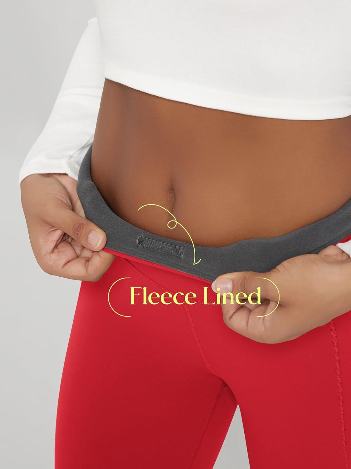 ODODOS Women's Fleece Lined Leggings with Pockets Thermal Warm Winter Tights - 25" / 28" High Waisted Thick Yoga Pants(Red)