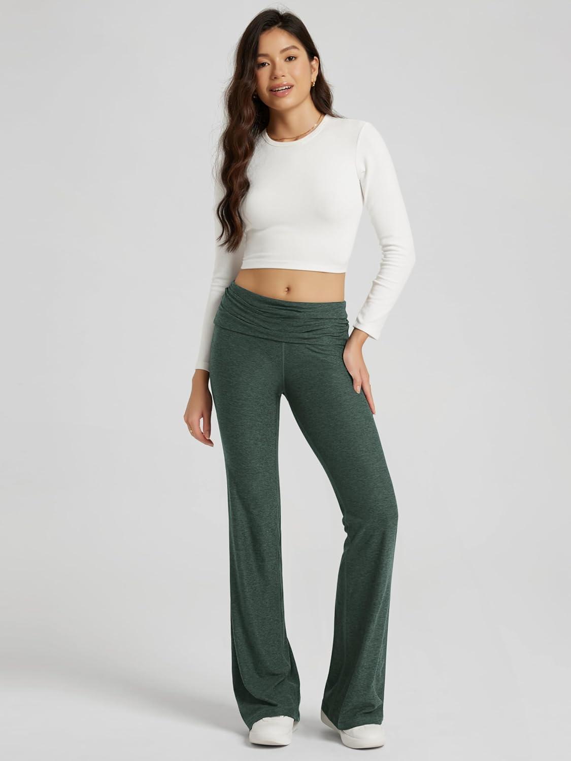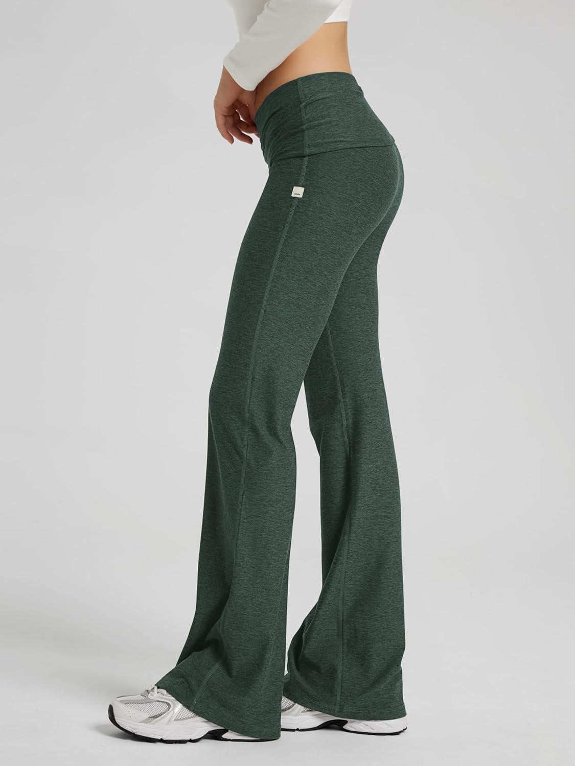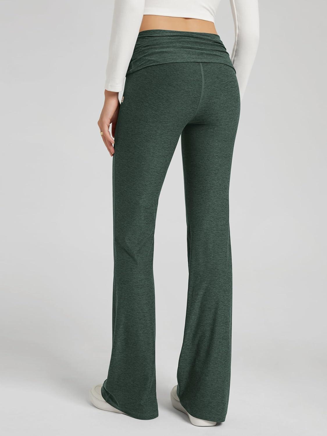 ODODOS Women’s Foldover Pants - Ultra Soft Stratum Tech Performance Mid Rise Casual Lounge Yoga Pants - 30" Inseam(Aspen Heather)