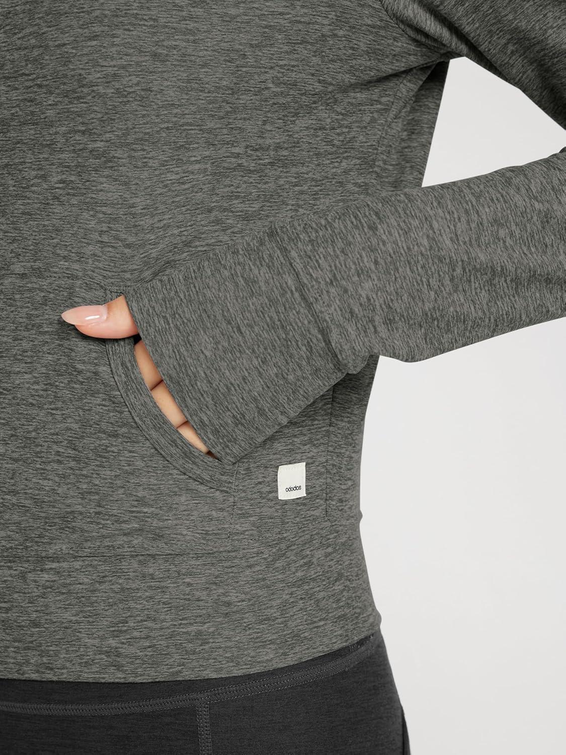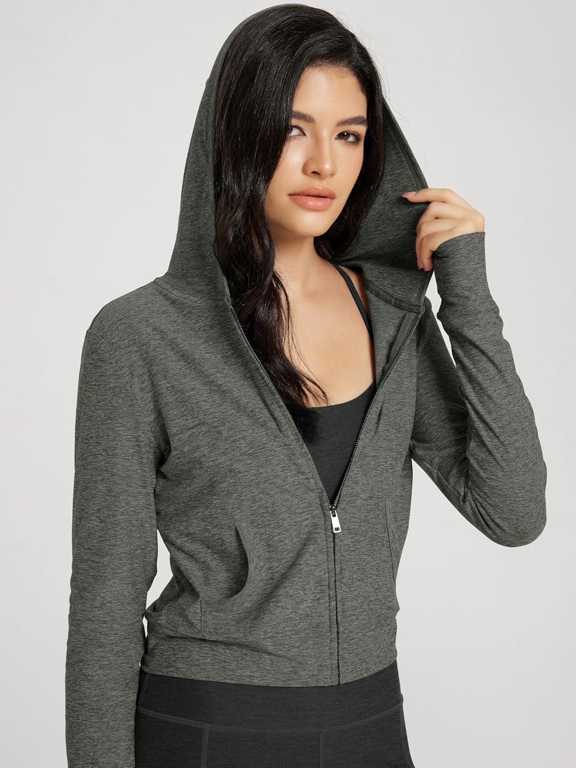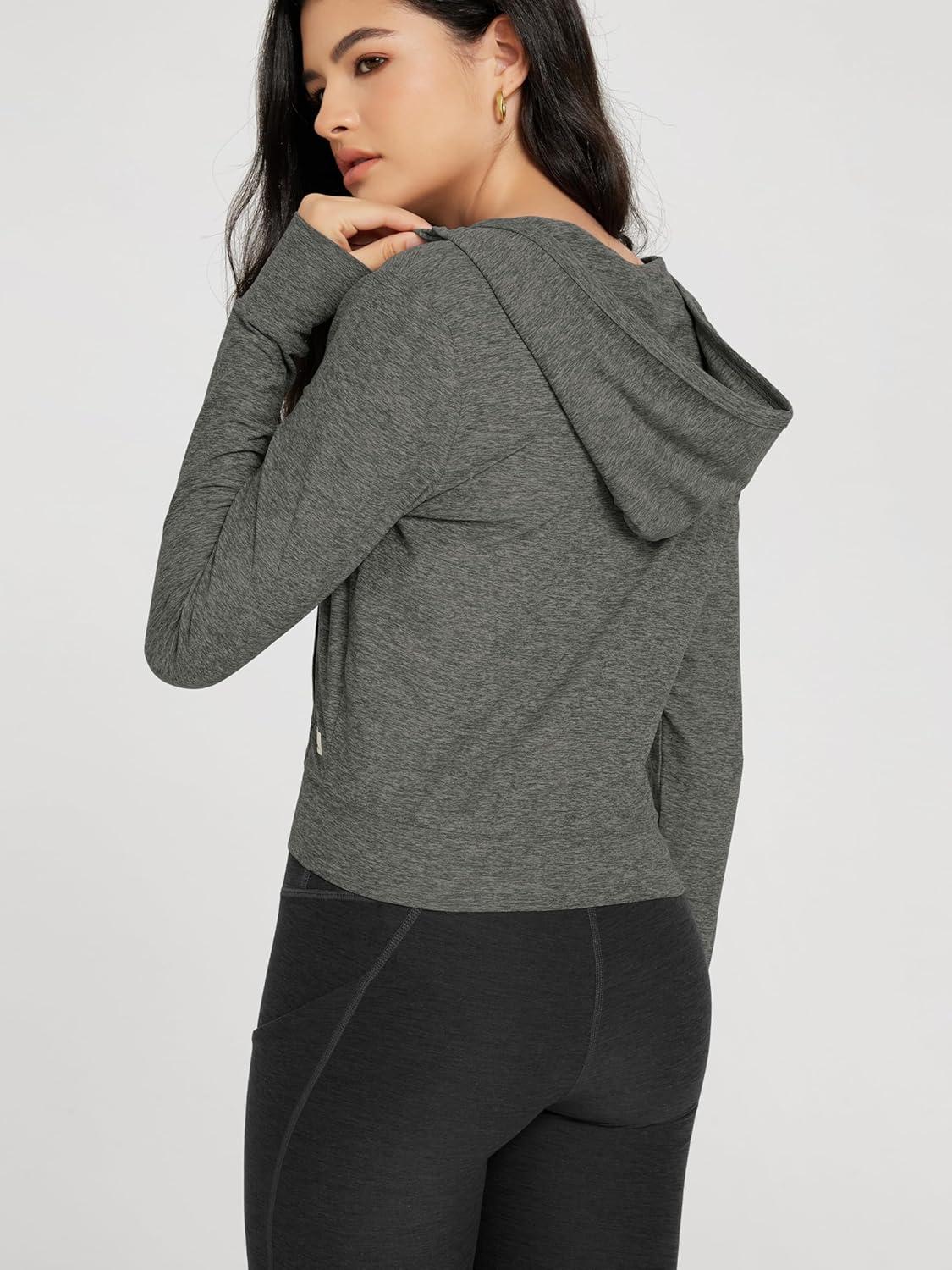 ODODOS Women’s Full-Zip Cropped Hoodie – Stratum Tech Ultra Soft UPF 50+ Hooded Jacket with Pockets(Smoke Heather)