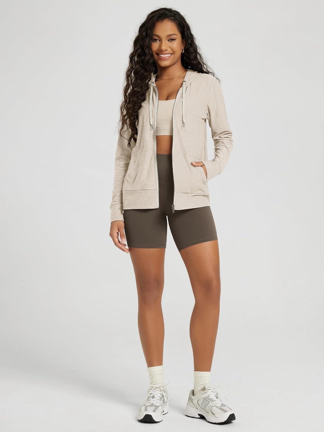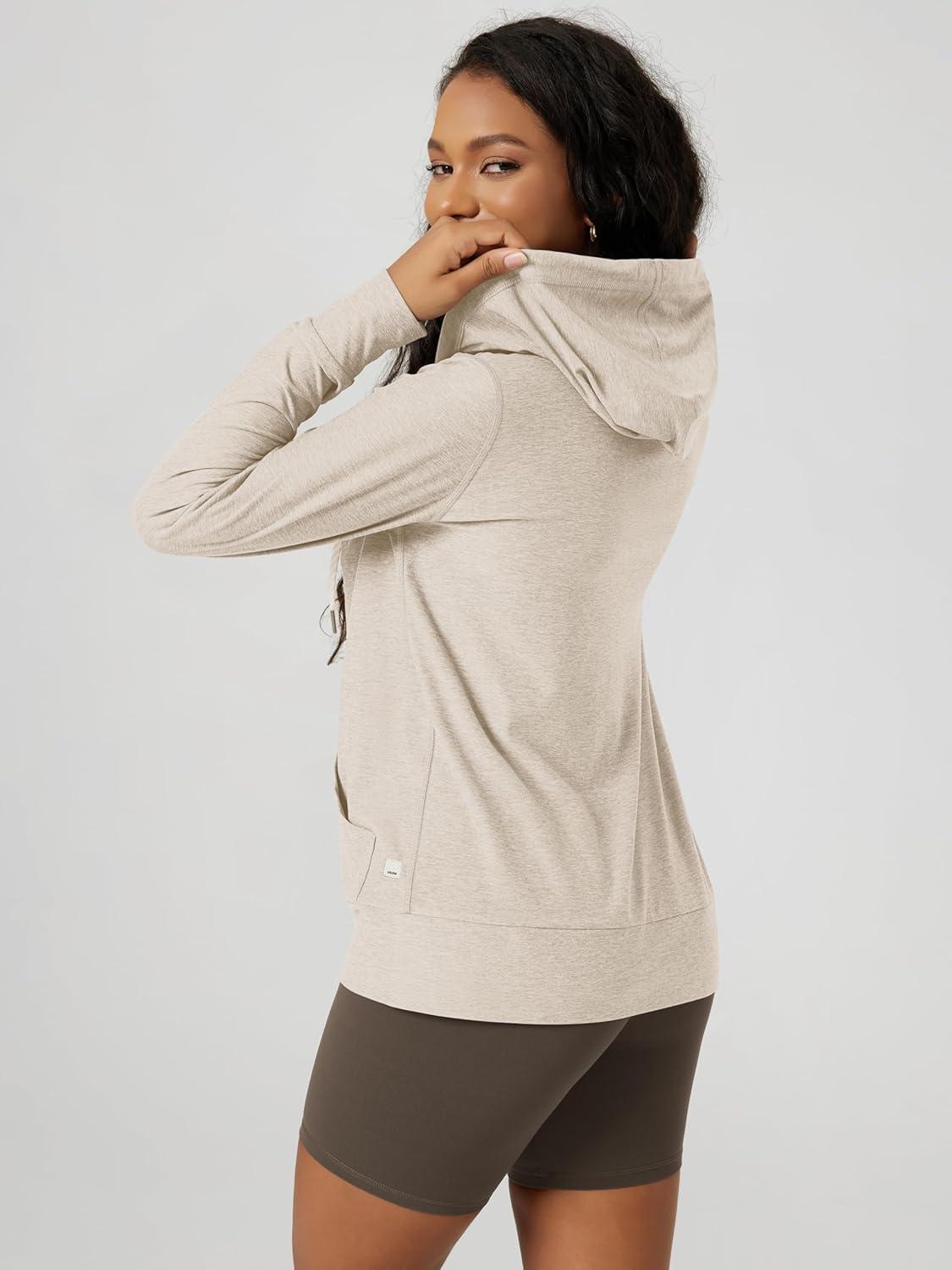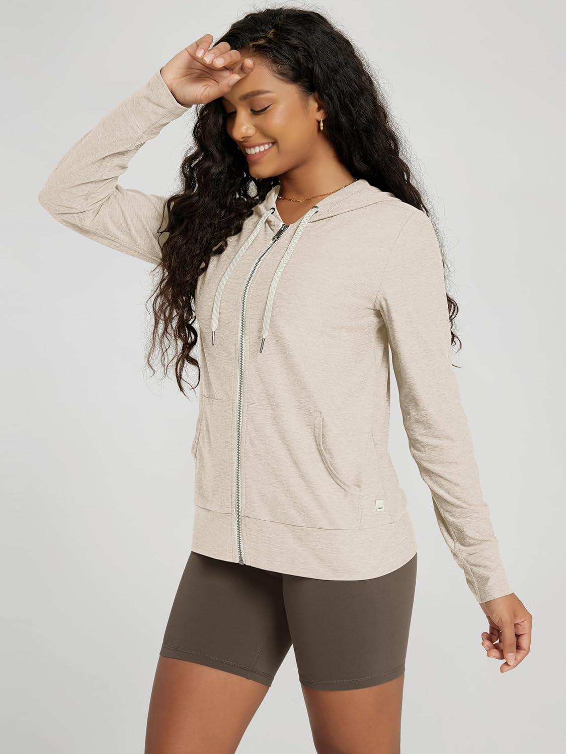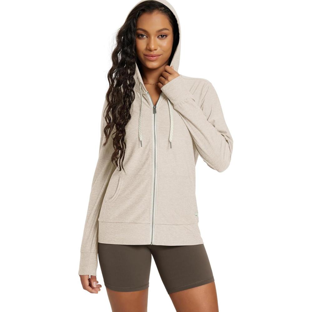ODODOS Women's Full-Zip Hoodie – Stratum Tech Ultra Soft Outfit UPF 50+ Performance Hooded Jacket with Pockets(Ecru Heather)