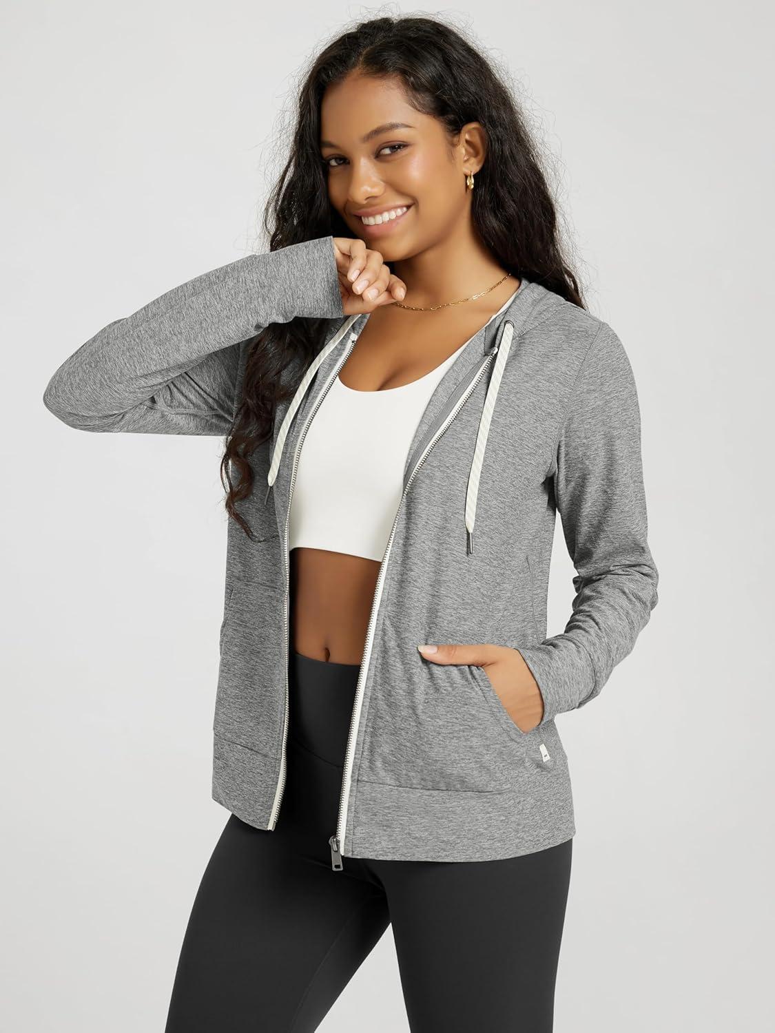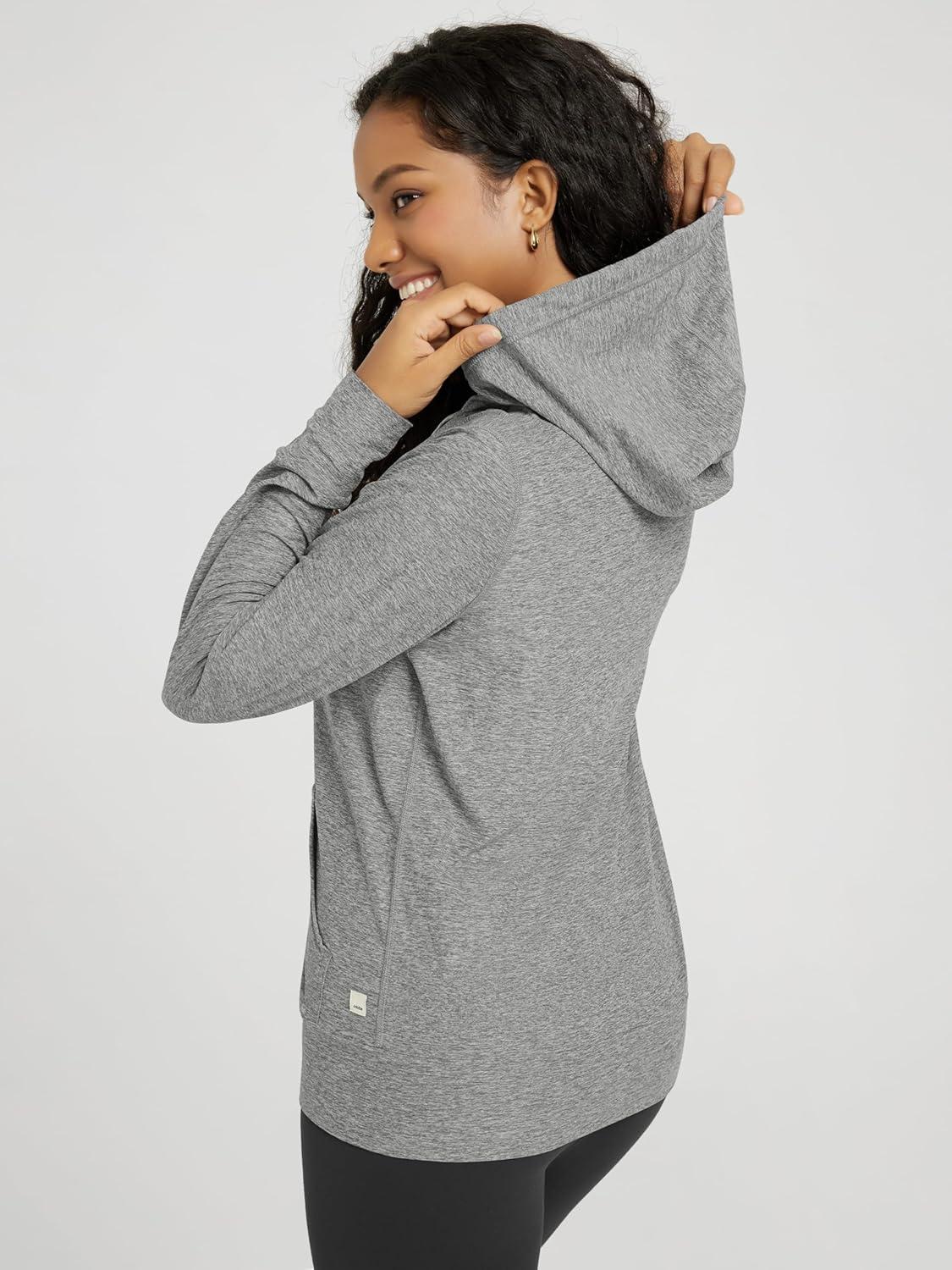 ODODOS Women’s Full-Zip Hoodie – Stratum Tech Ultra Soft Outfit UPF 50+ Performance Hooded Jacket with Pockets(Grey Heather)