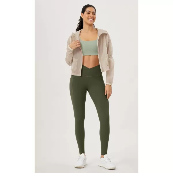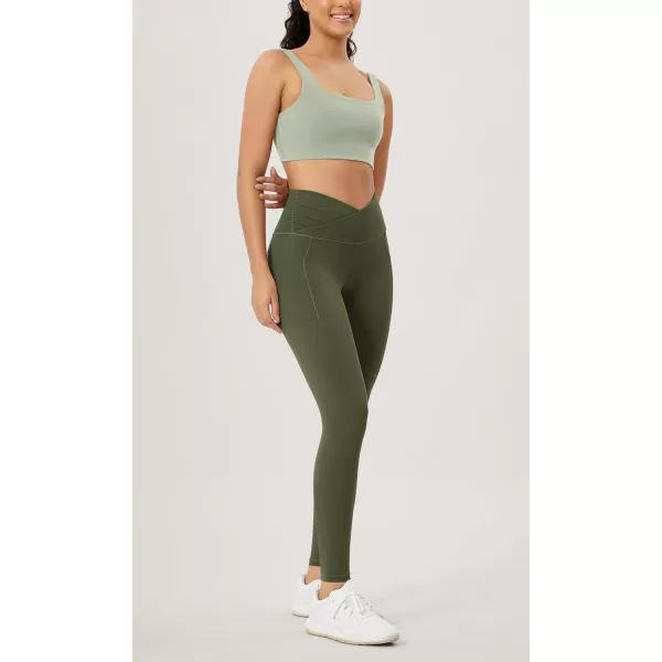 ODODOS Womens Gathered Cross Waist Yoga Leggings with Pockets 25quot  28quot Crossover Workout Yoga PantsDark Olive