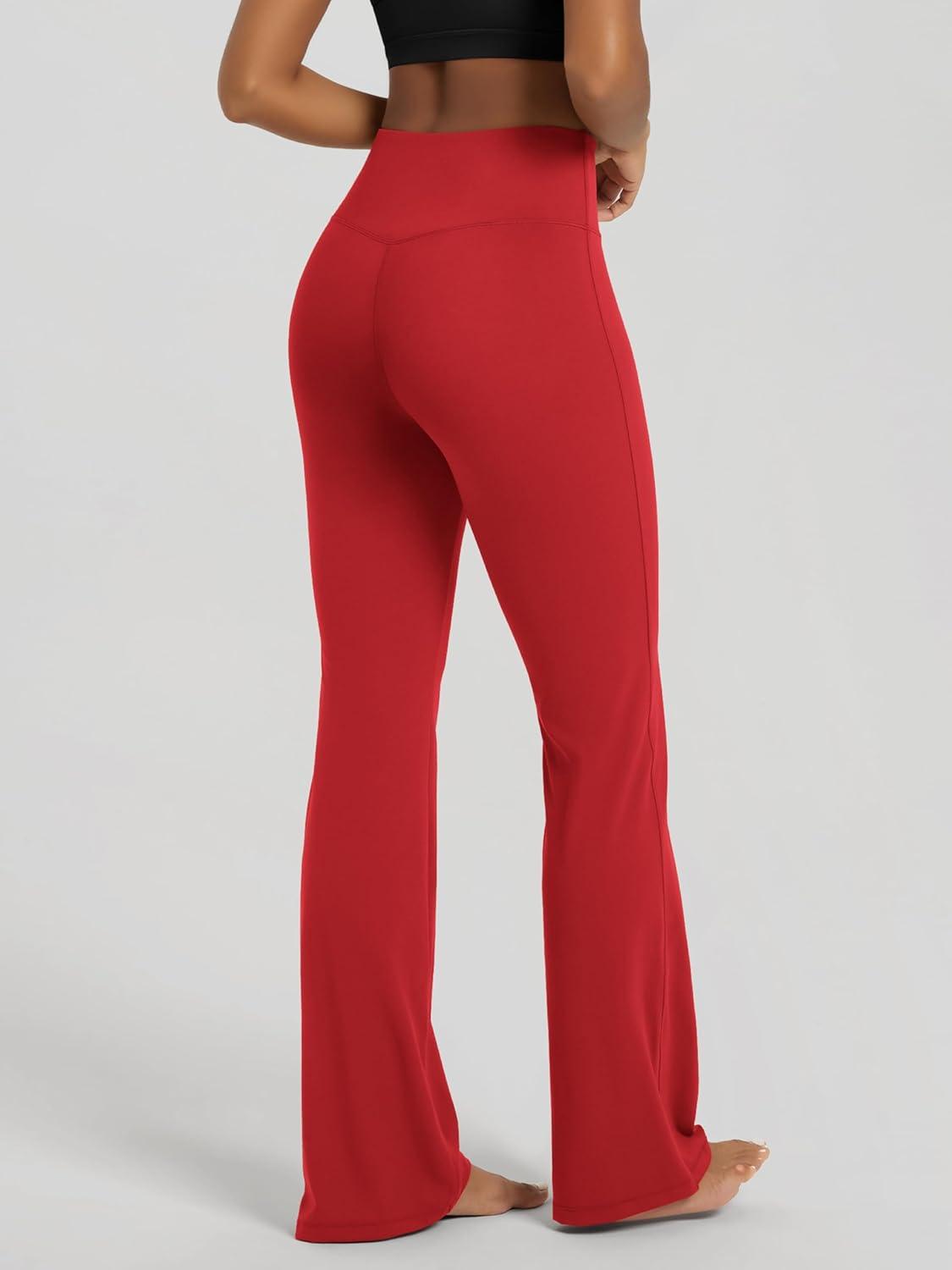 ODODOS Women’s High Waist Flared Yoga Pants Tummy Control Gym Workout Bootcut Leggings with Inner Pocket – 29″ / 31″ Inseam(Red)