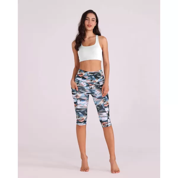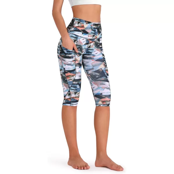 ODODOS Women's High Waisted Yoga Capris with Pockets, Tummy Control Non See Through Workout Athletic Running Capri Leggings(Fine Art)