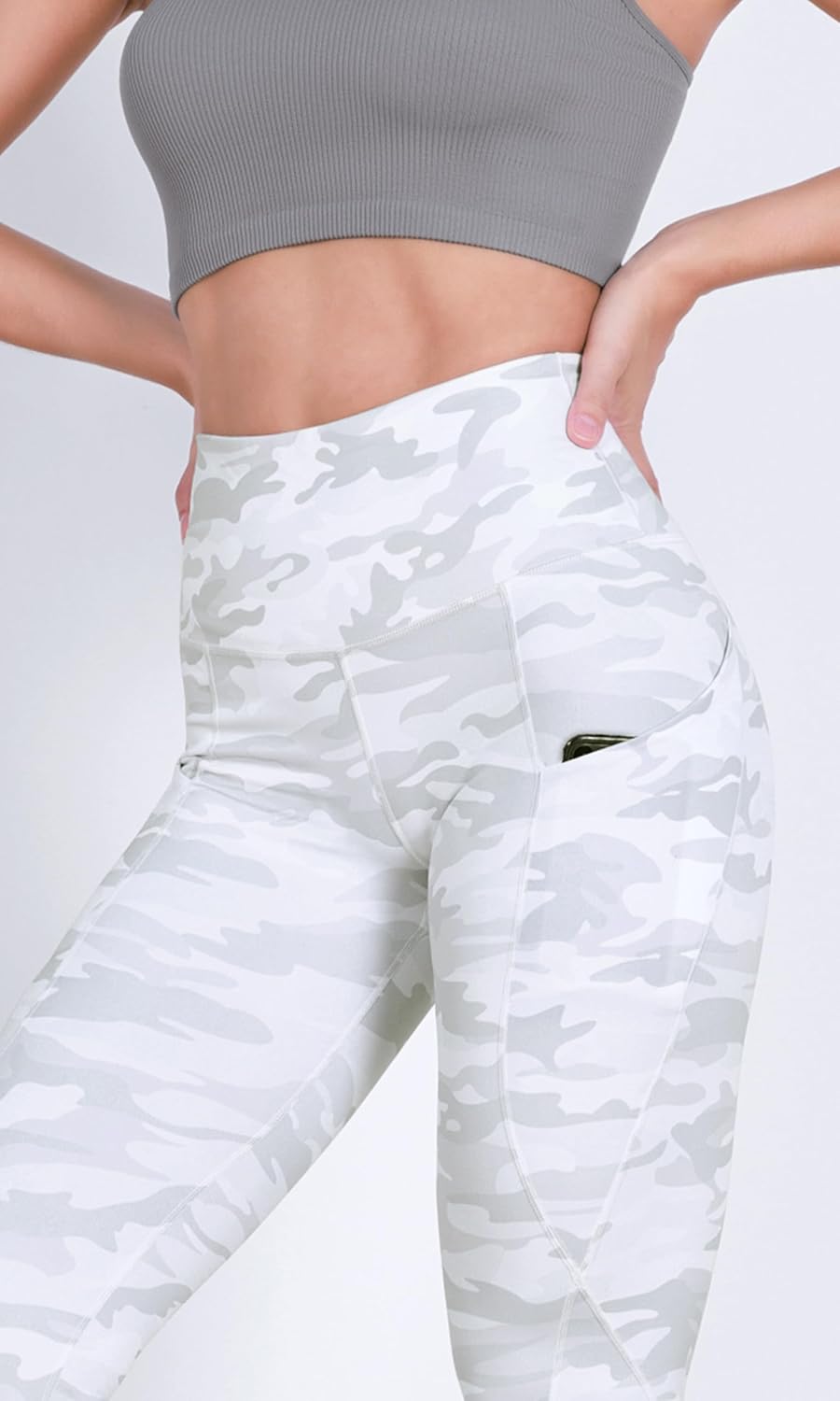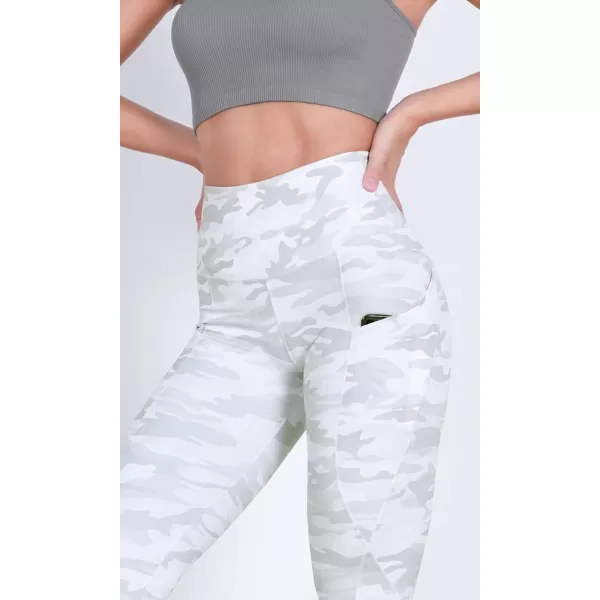ODODOS Women's High Waisted Yoga Leggings with Pockets, Tummy Control Non See Through Workout Athletic Running Yoga Pants(White Camo)