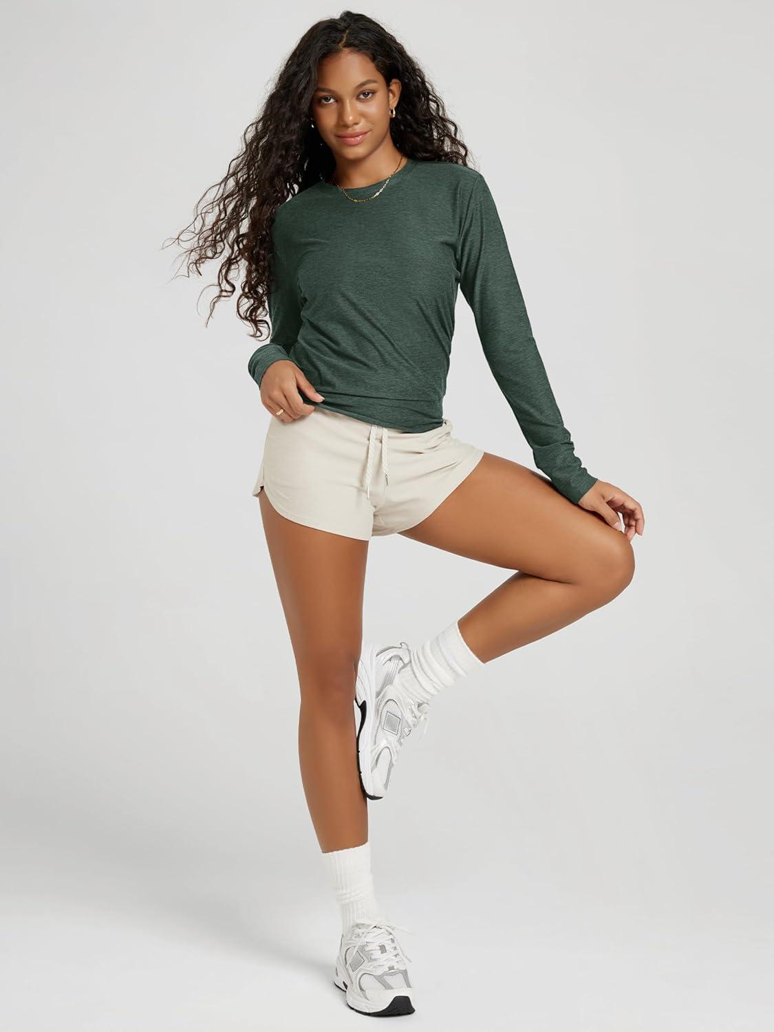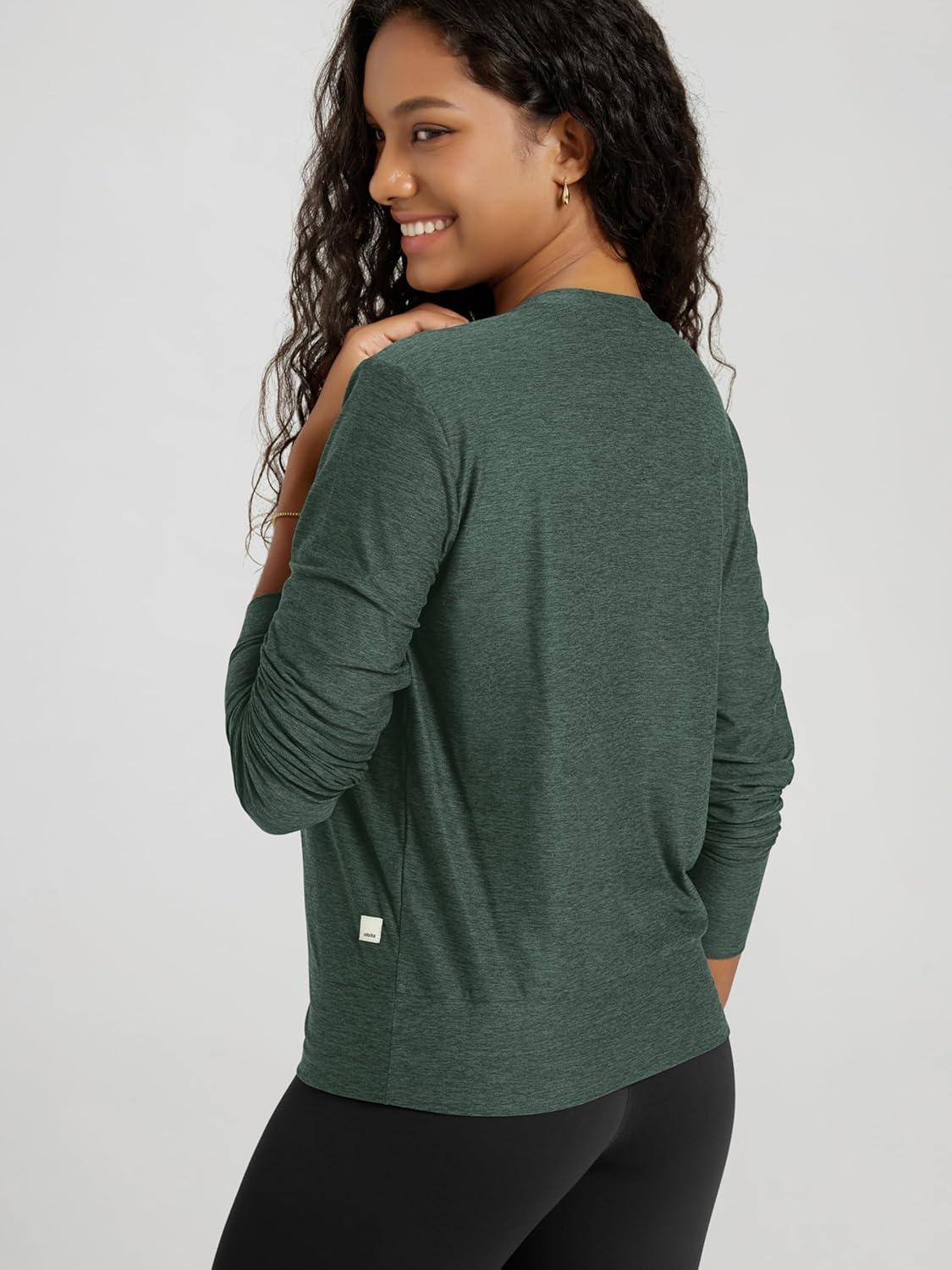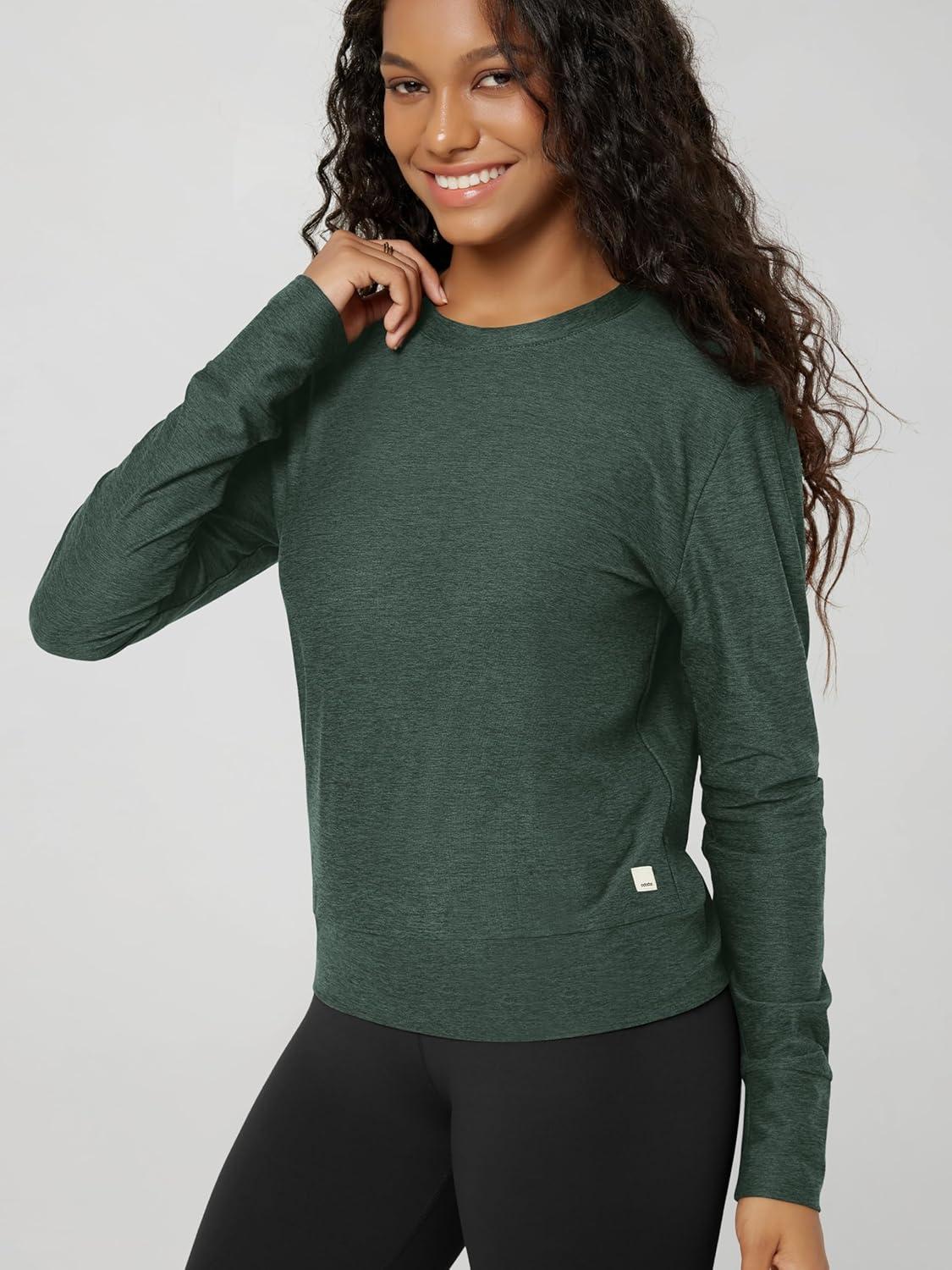 ODODOS Women’s Long Sleeve Crewneck Tee – Ultra-Soft Stratum Tech Performance T-Shirts UPF 50+ Daily Pullover Tops(Aspen Heather)