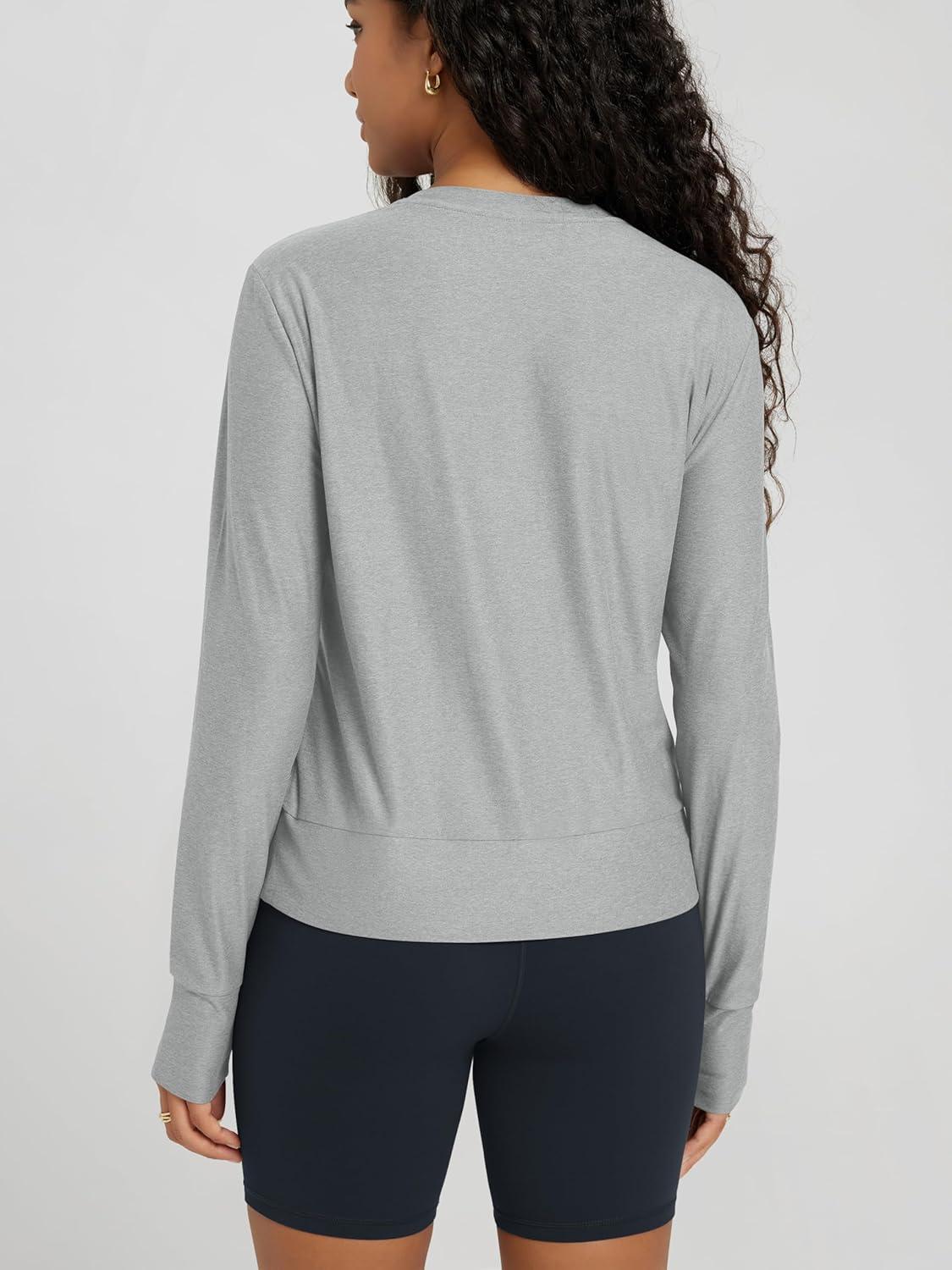 ODODOS Women’s Long Sleeve Crewneck Tee - Ultra-Soft Stratum Tech Performance T-Shirts UPF 50+ Daily Pullover Tops(Pale Grey Heather)